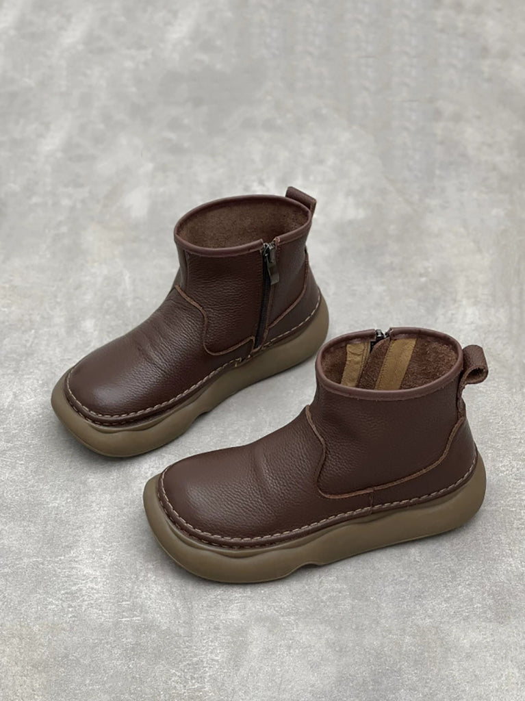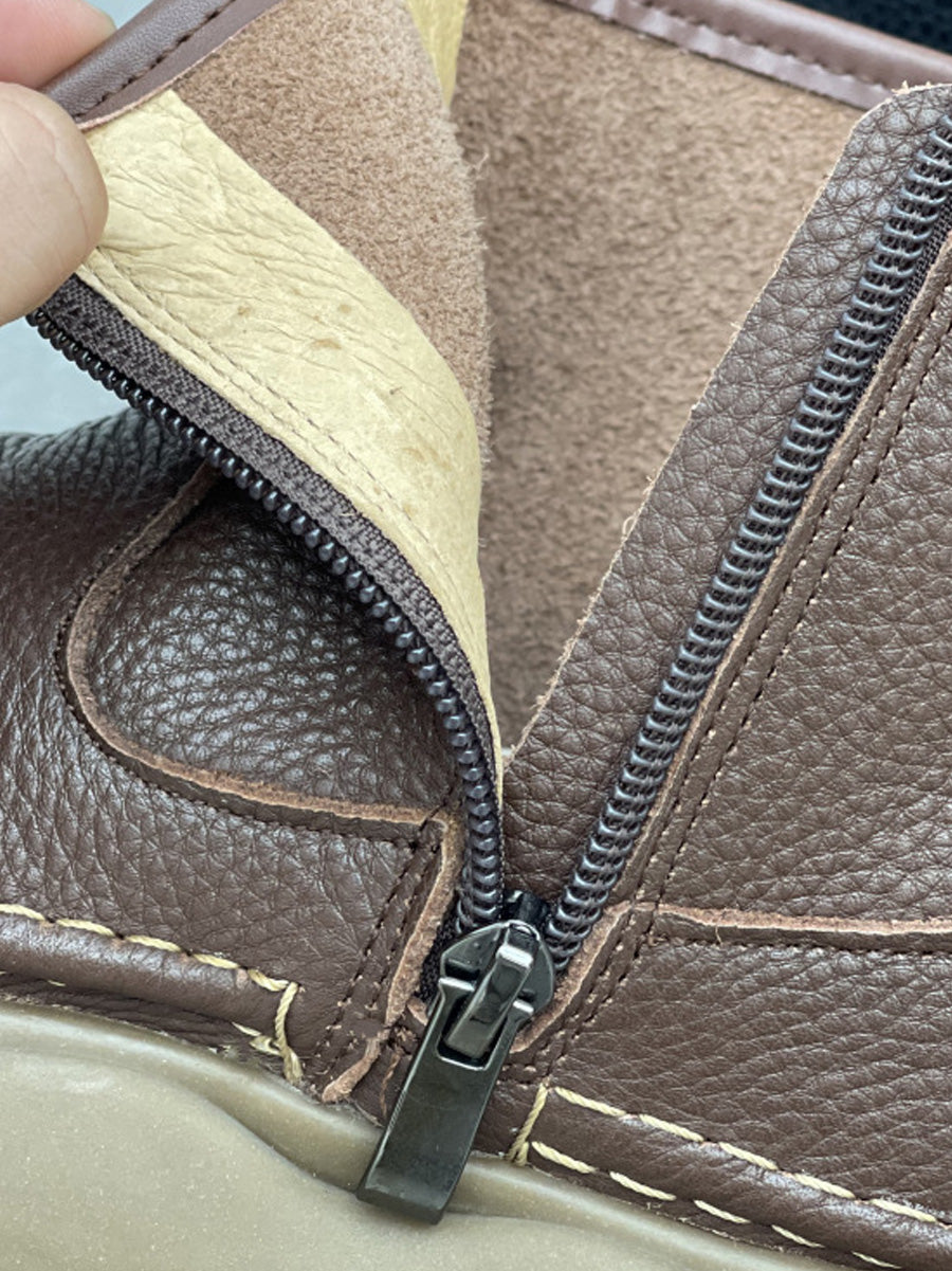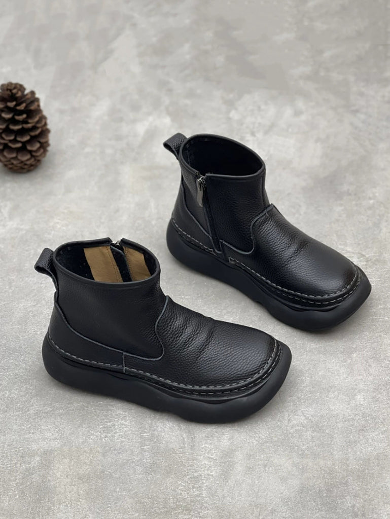 Botas femininas de inverno em couro legítimo com emendas e cano baixo