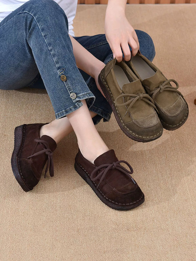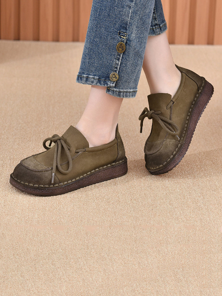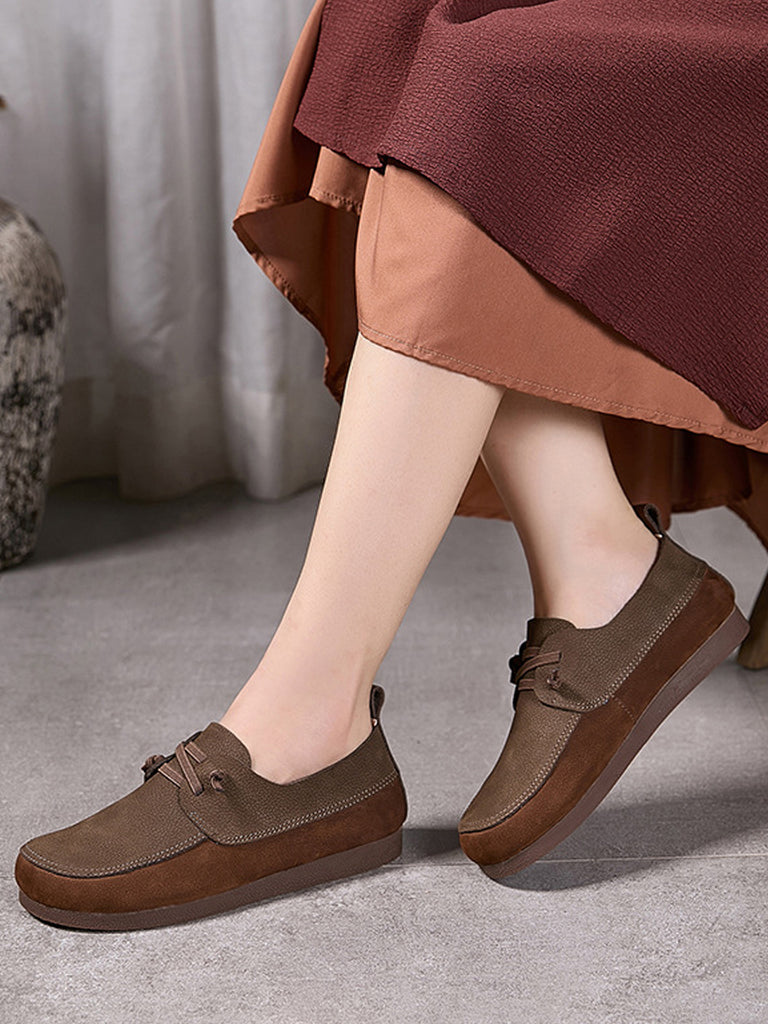 Sapatos baixos vintage de couro legítimo femininos com emendas