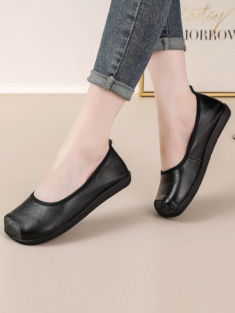 Mulheres Casual Sólido Couro Genuíno Soft Sapatos Baixos