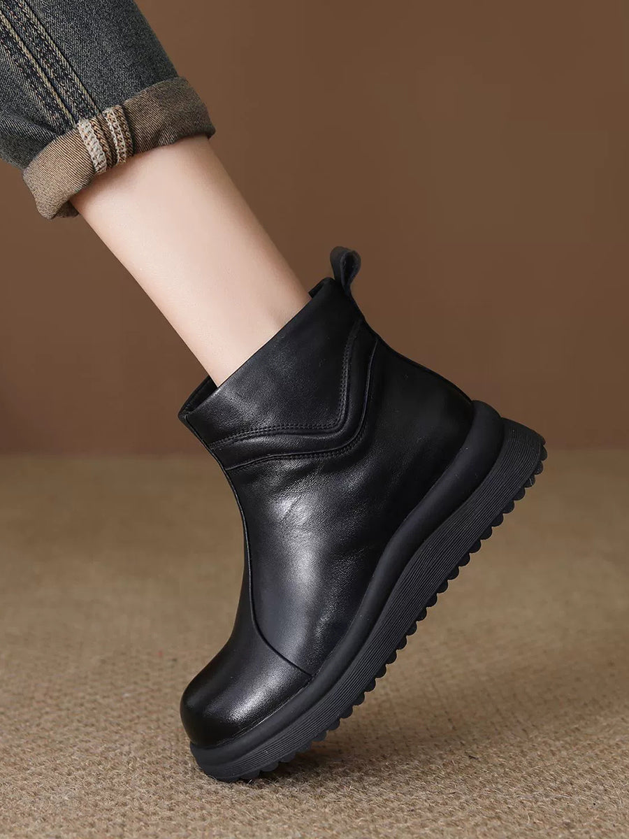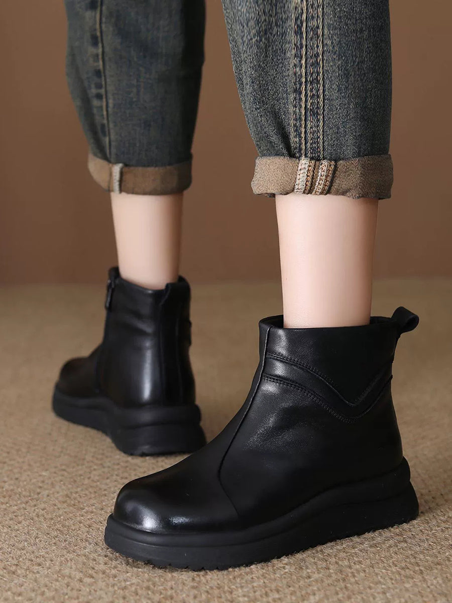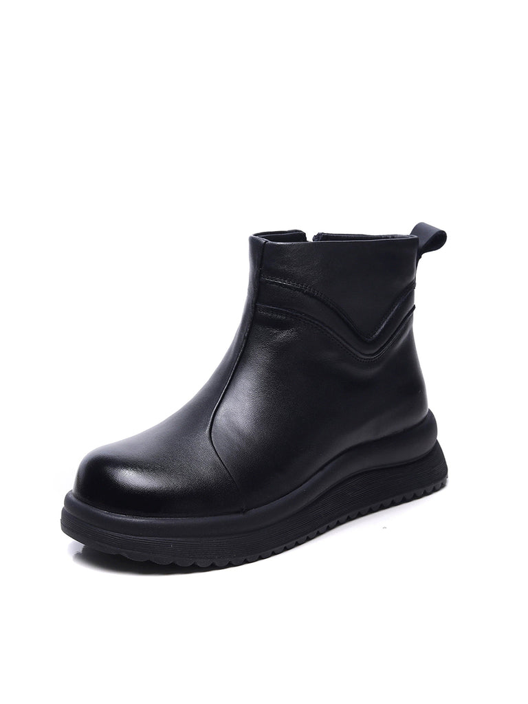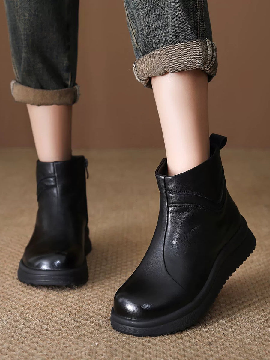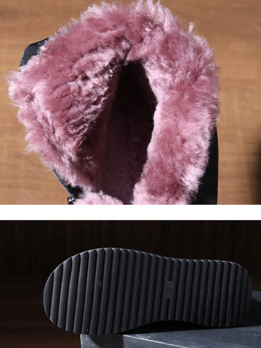 Botas de cano curto femininas em couro legítimo com forro de lã.