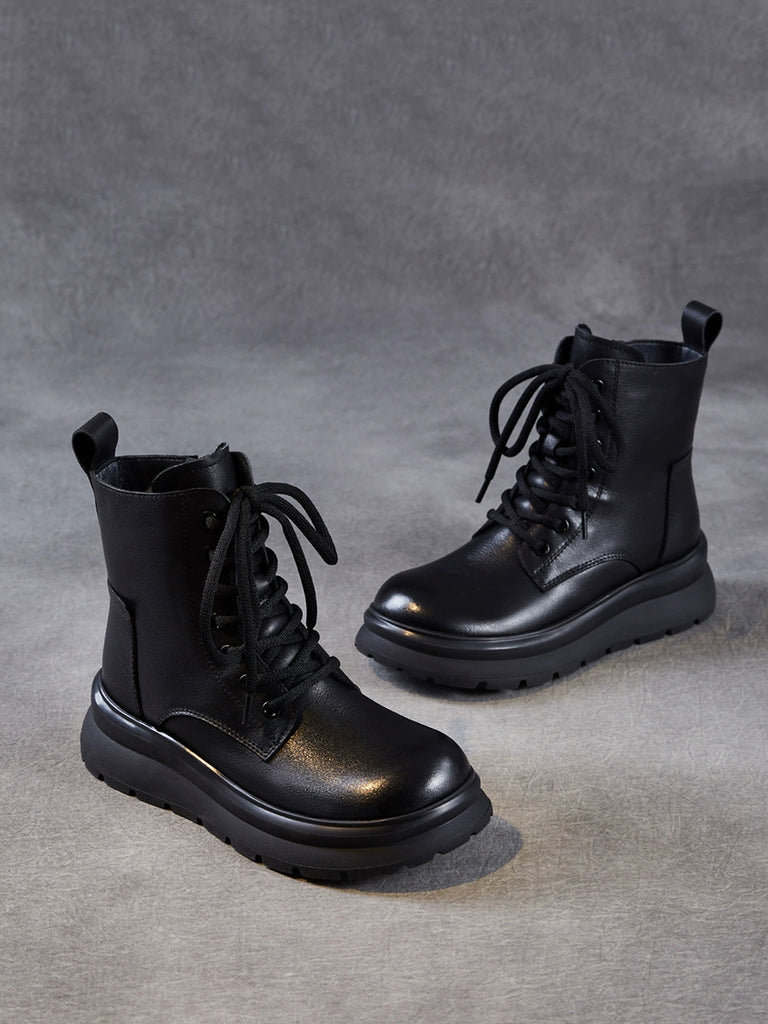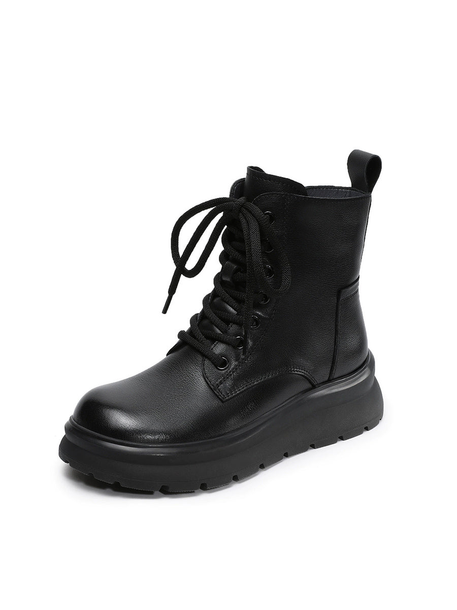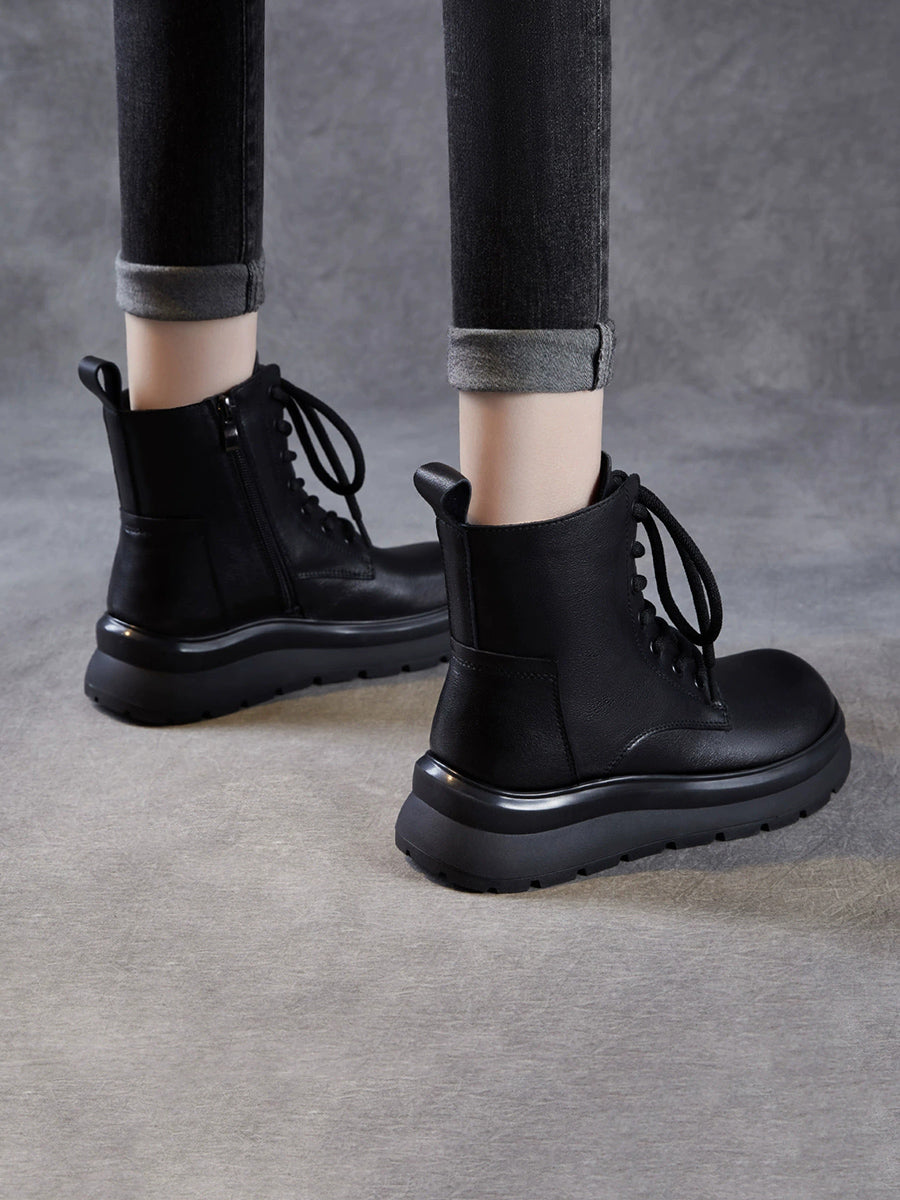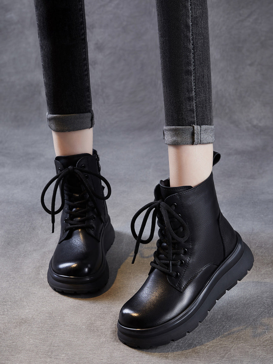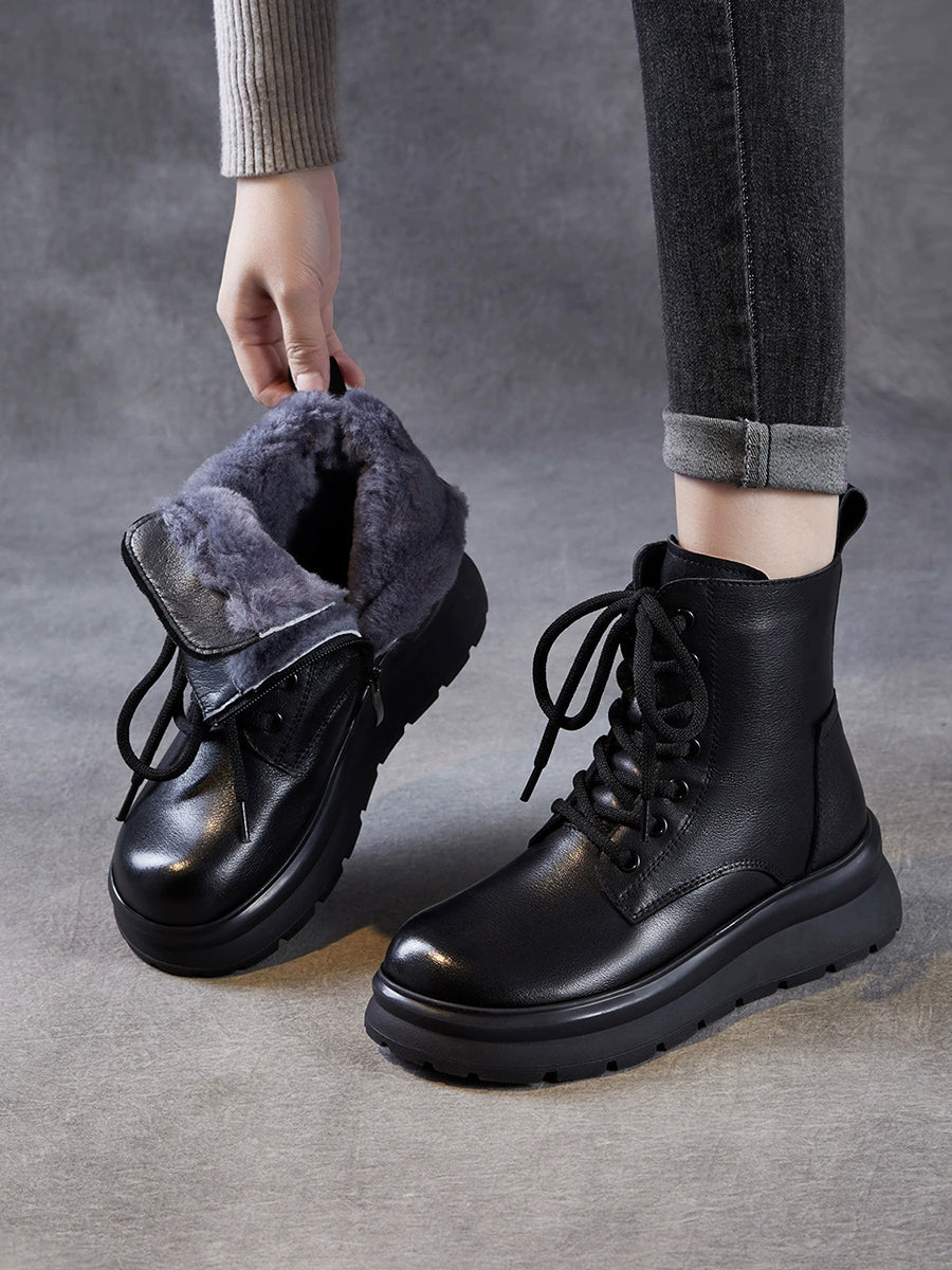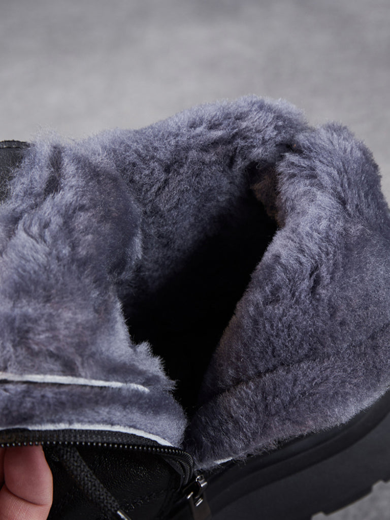 Botas femininas casuais de inverno em couro legítimo com forro de lã.