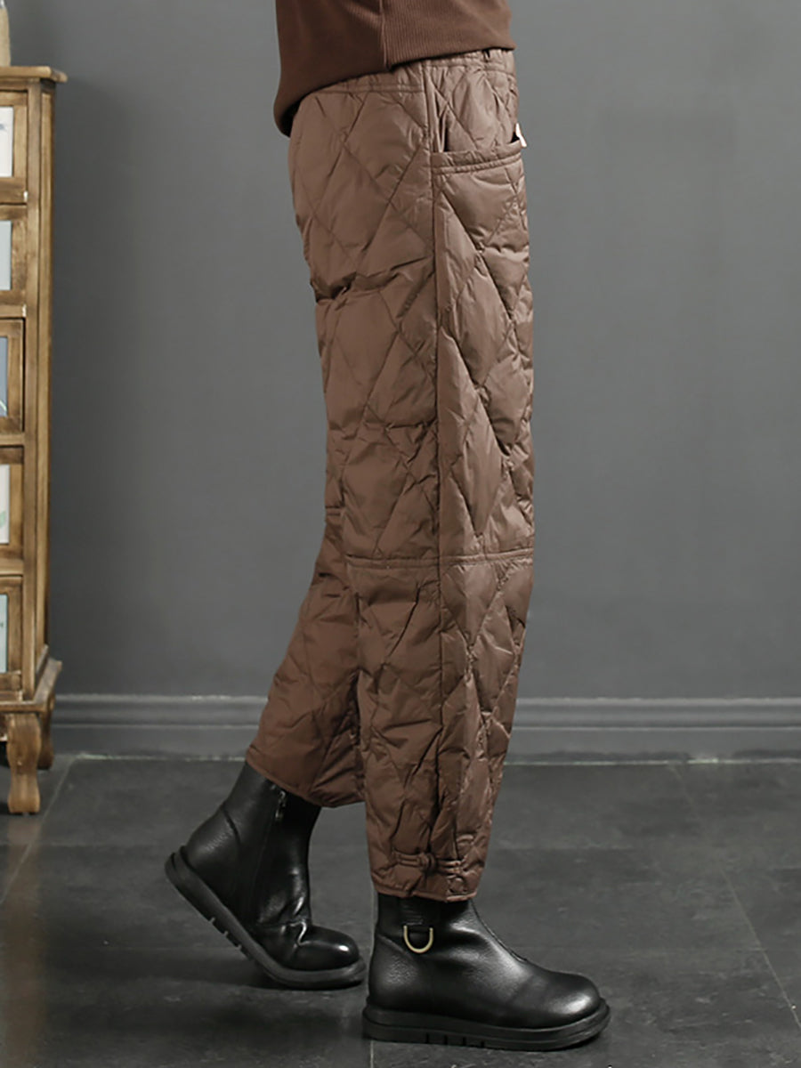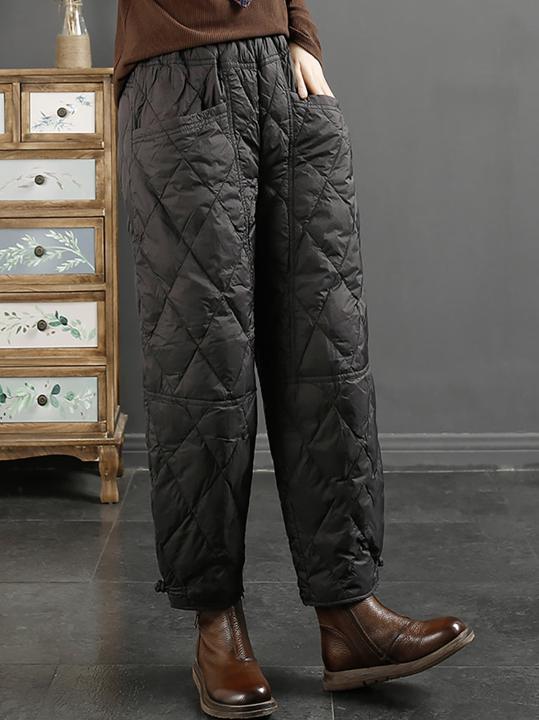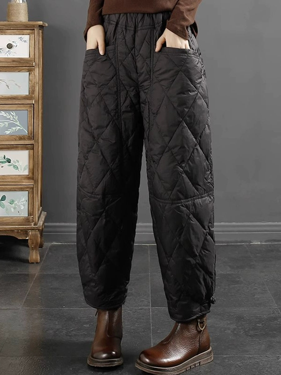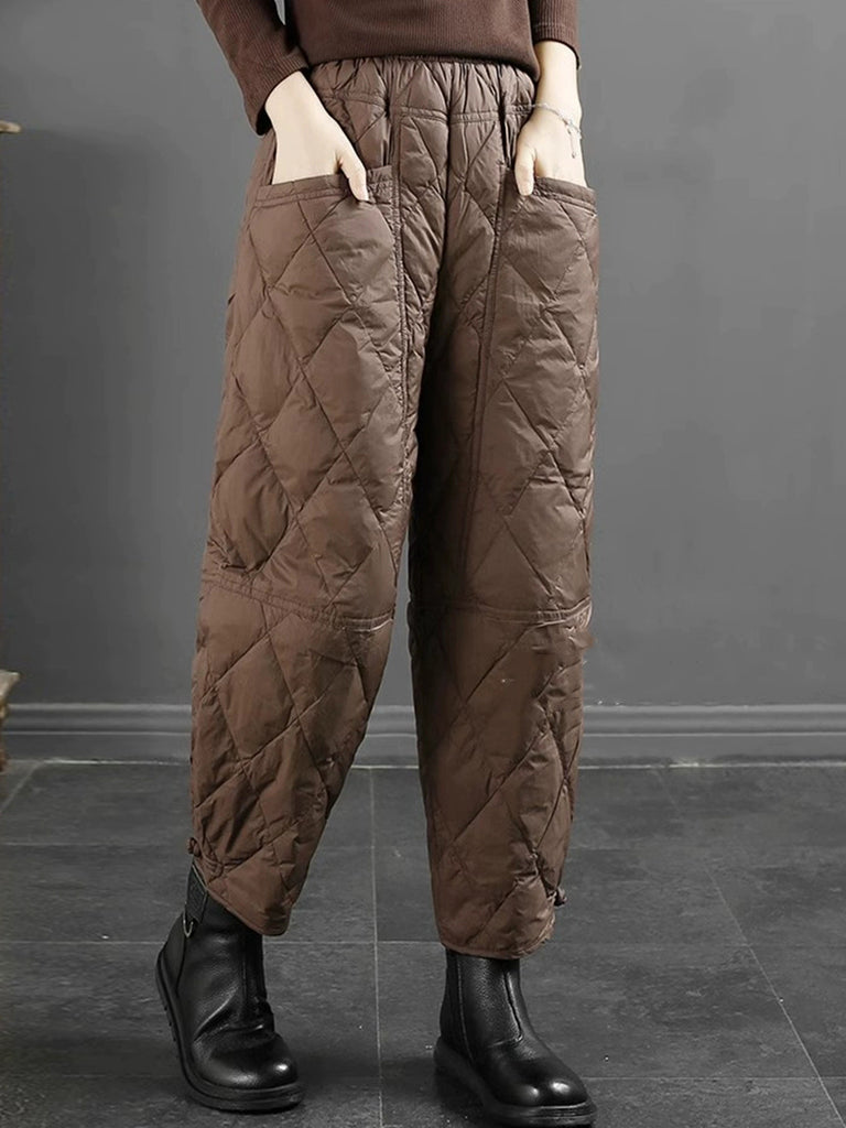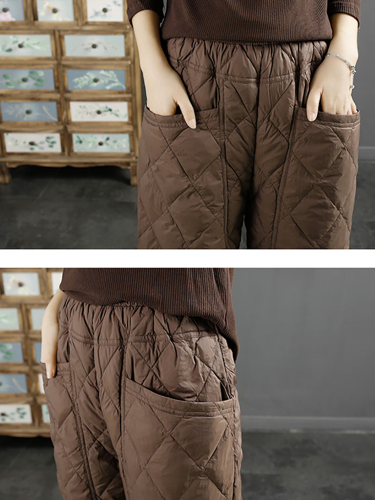 Calça Harem Feminina Casual de Inverno em Cor Lisa com Acolchoamento