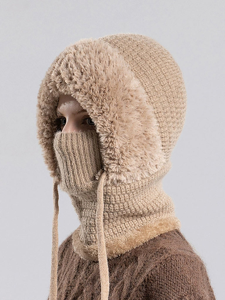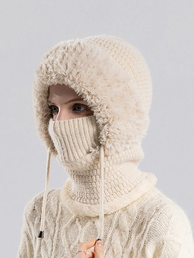Cachecol e gorro de pelúcia tricotados e quentinhos para mulheres, perfeitos para o inverno.