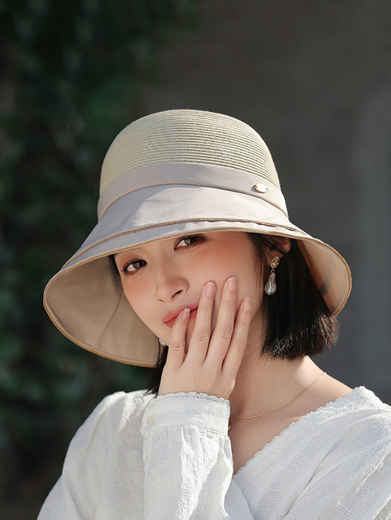 Chapéu feminino de verão com laço emendado e aba grande à prova de sol