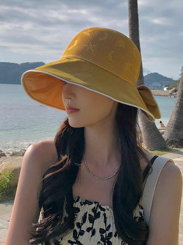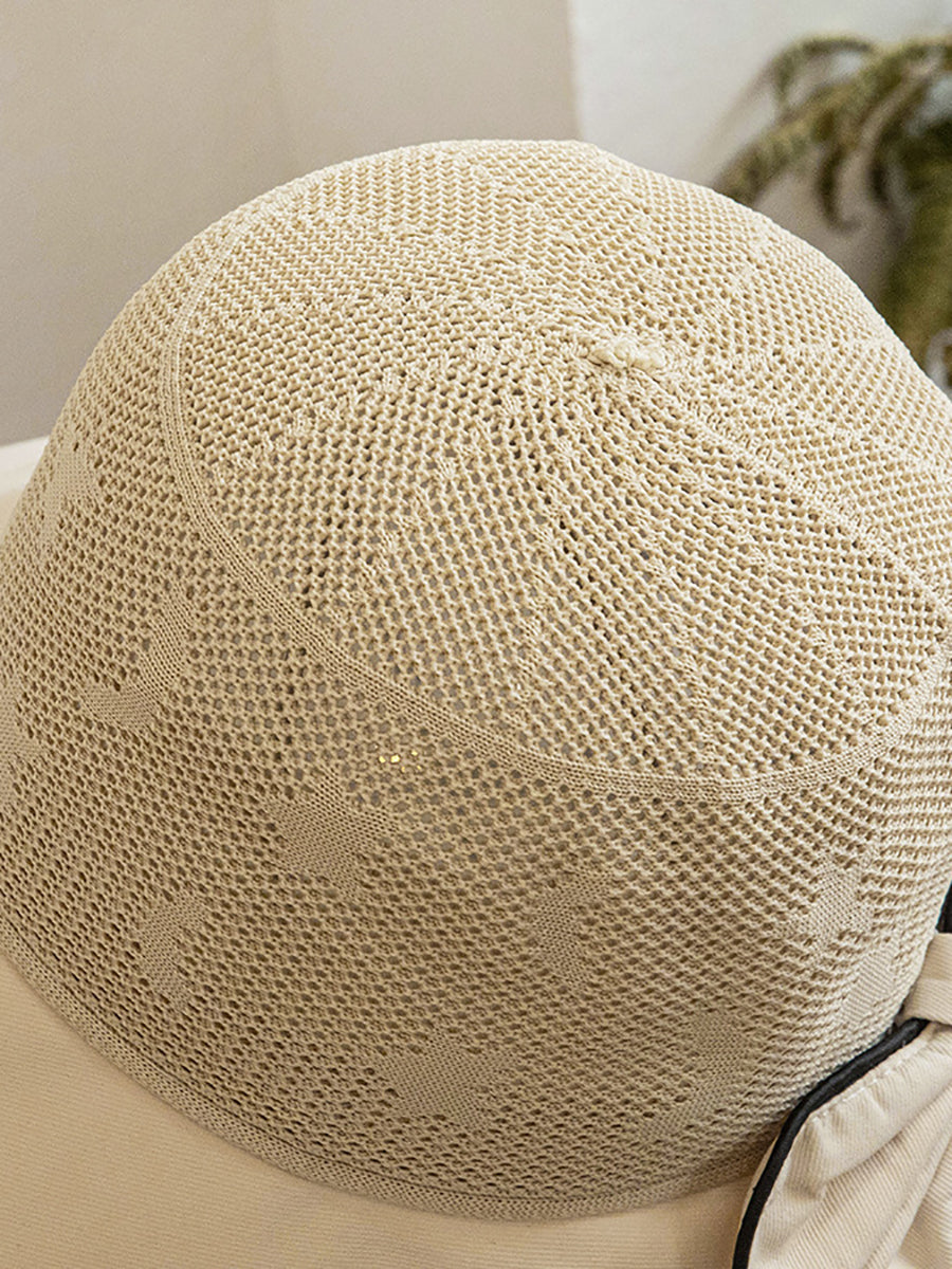 Chapéu feminino de verão com estampa de listras e laço à prova de sol