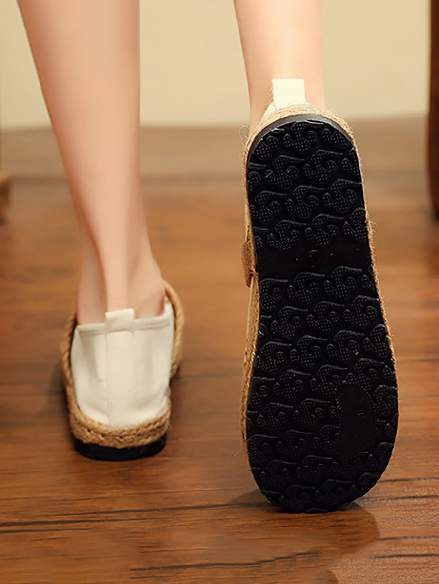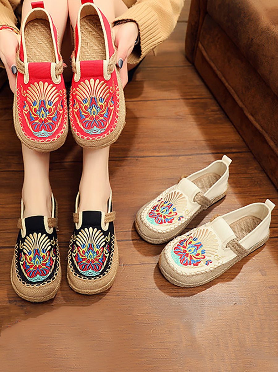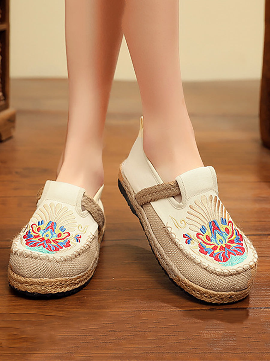 Sapatos femininos de linho bordado para a primavera