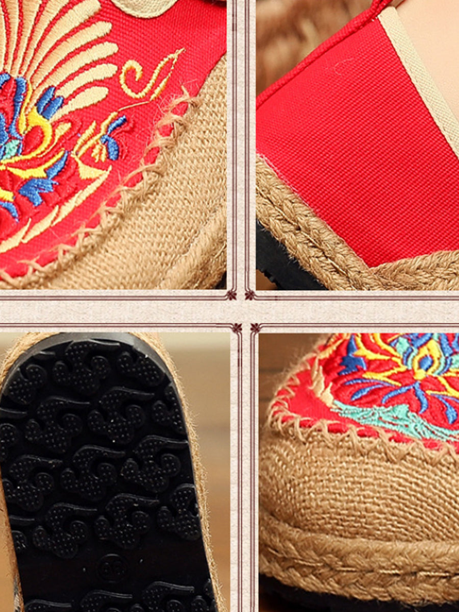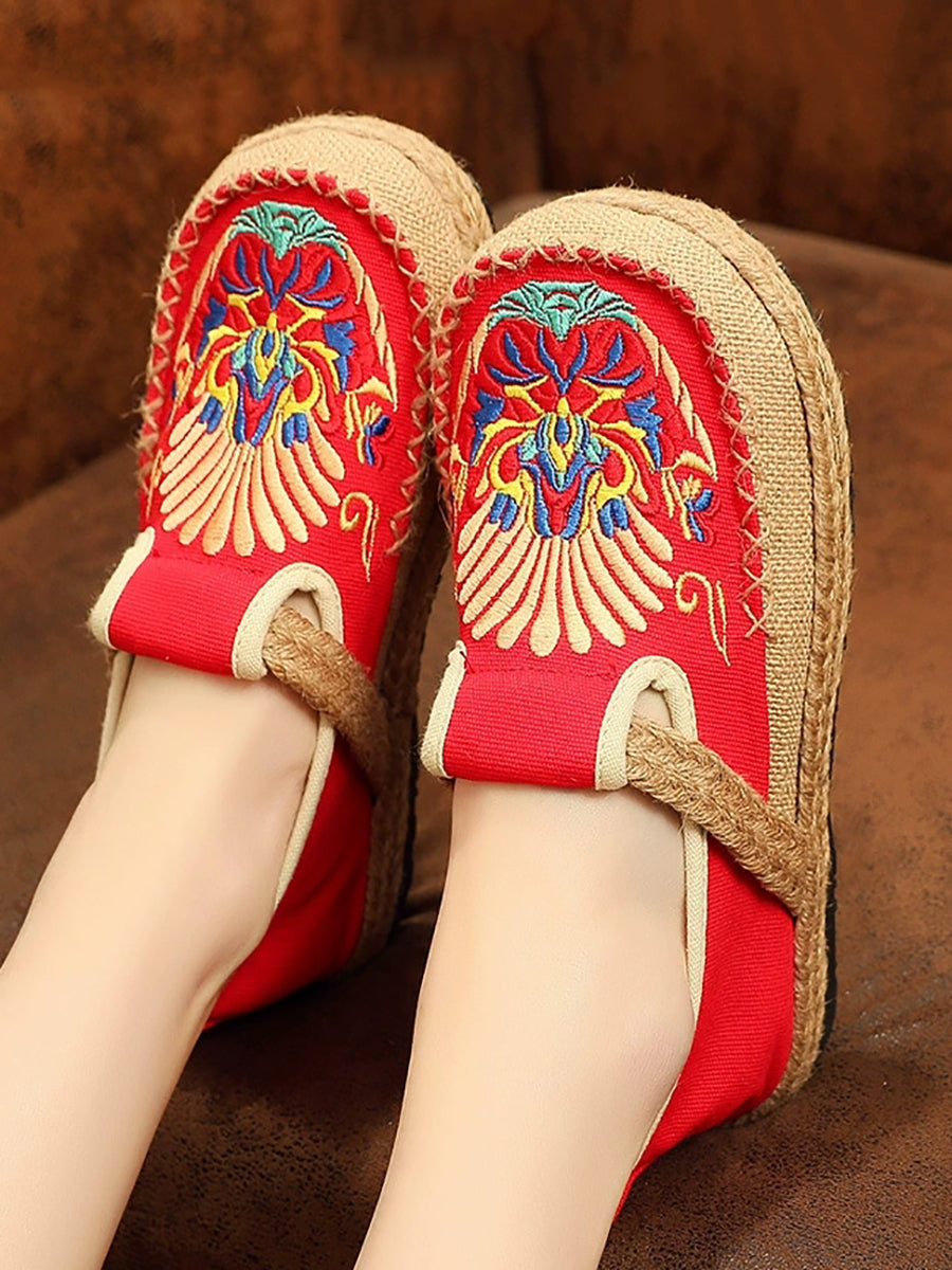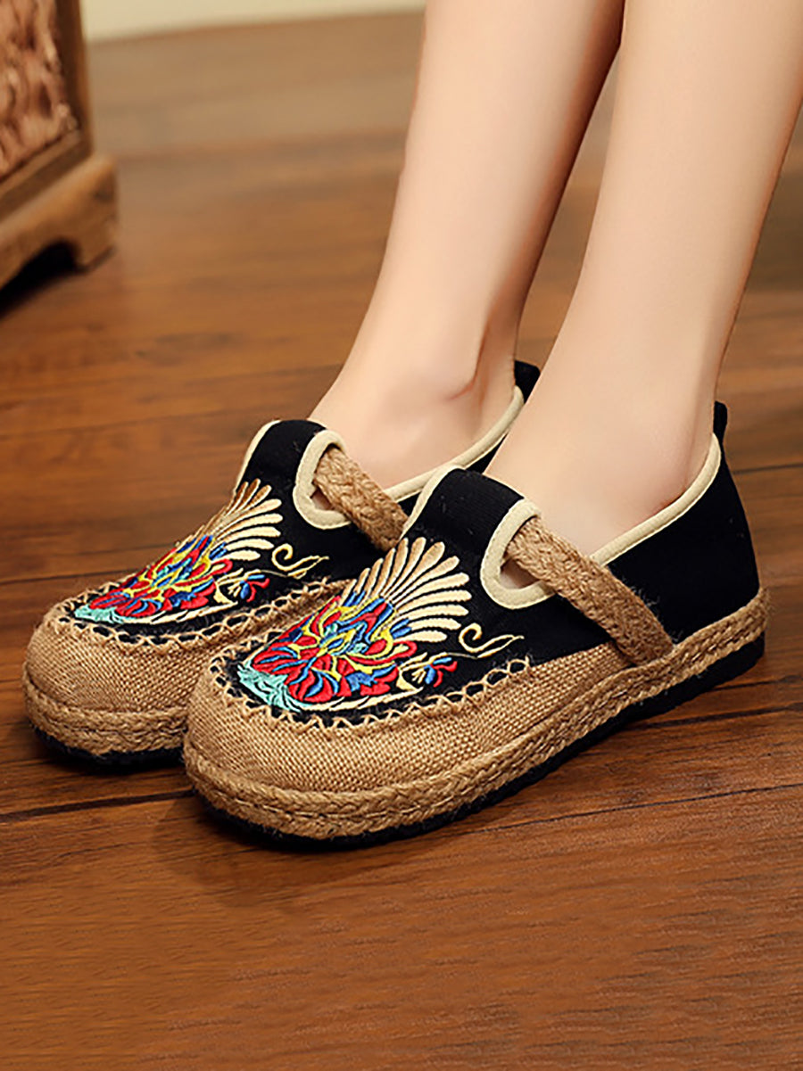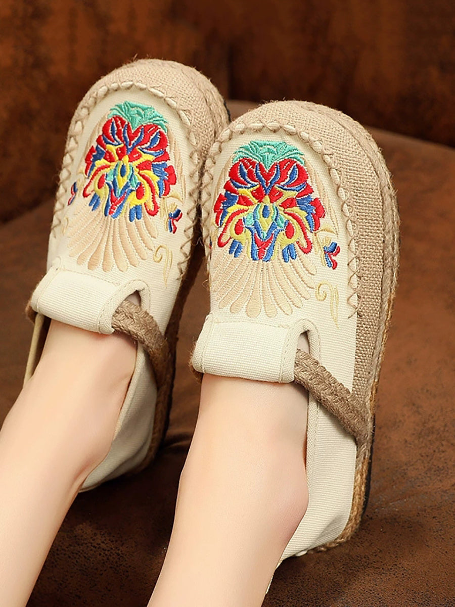 Sapatos femininos de linho bordado para a primavera