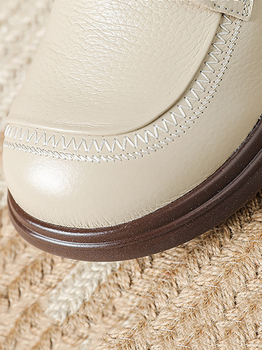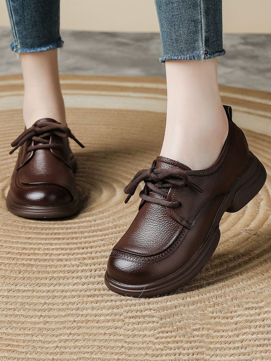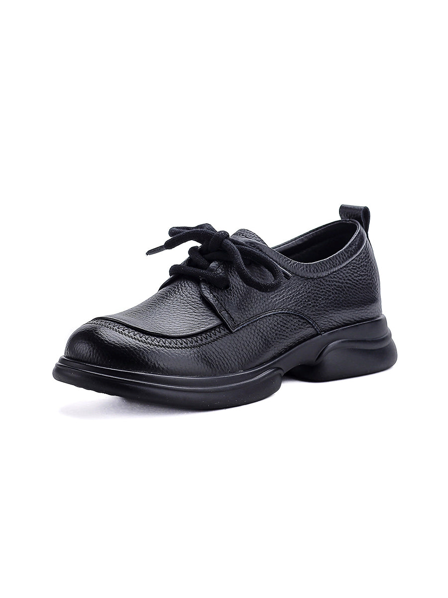 Sapatos femininos de salto baixo em couro legítimo estilo retrô para a primavera