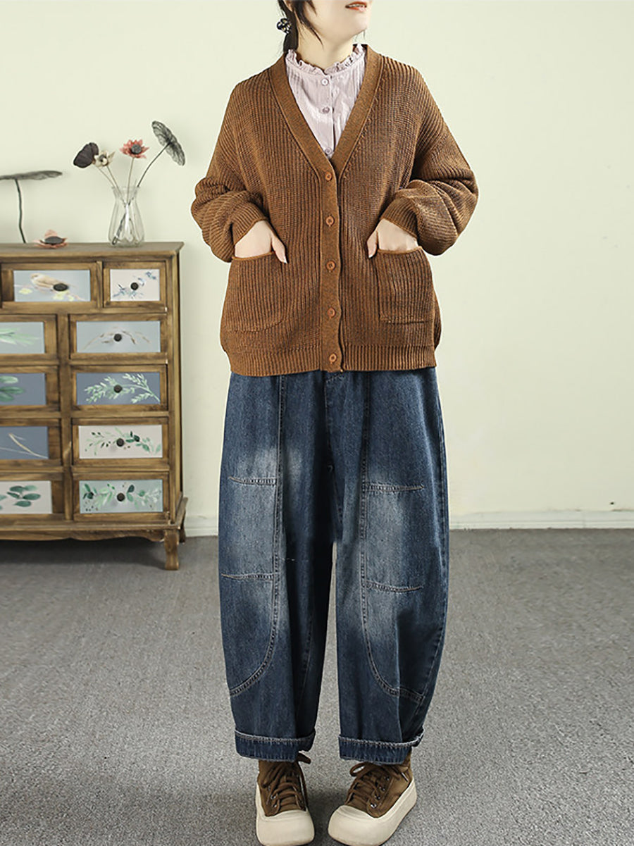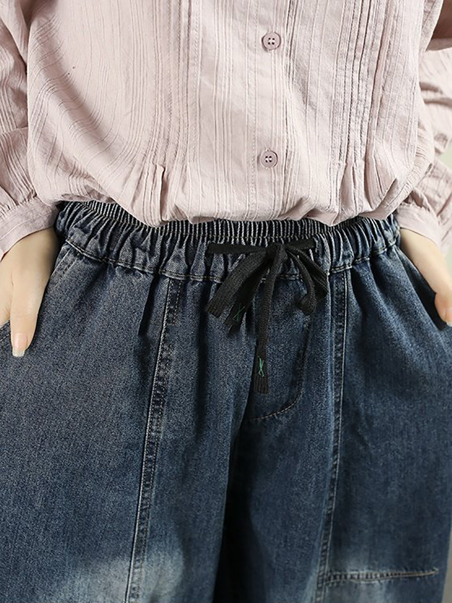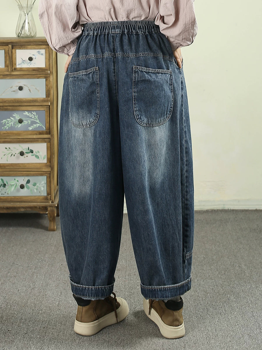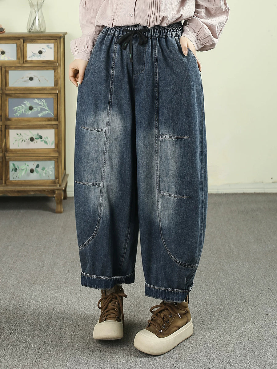 Calça Harem Feminina Vintage de Primavera em Jeans com Recortes