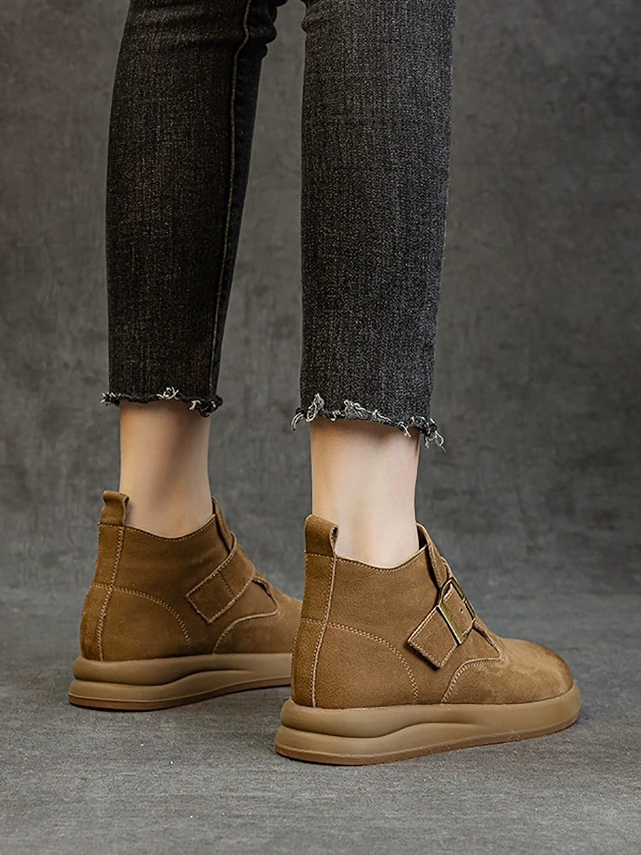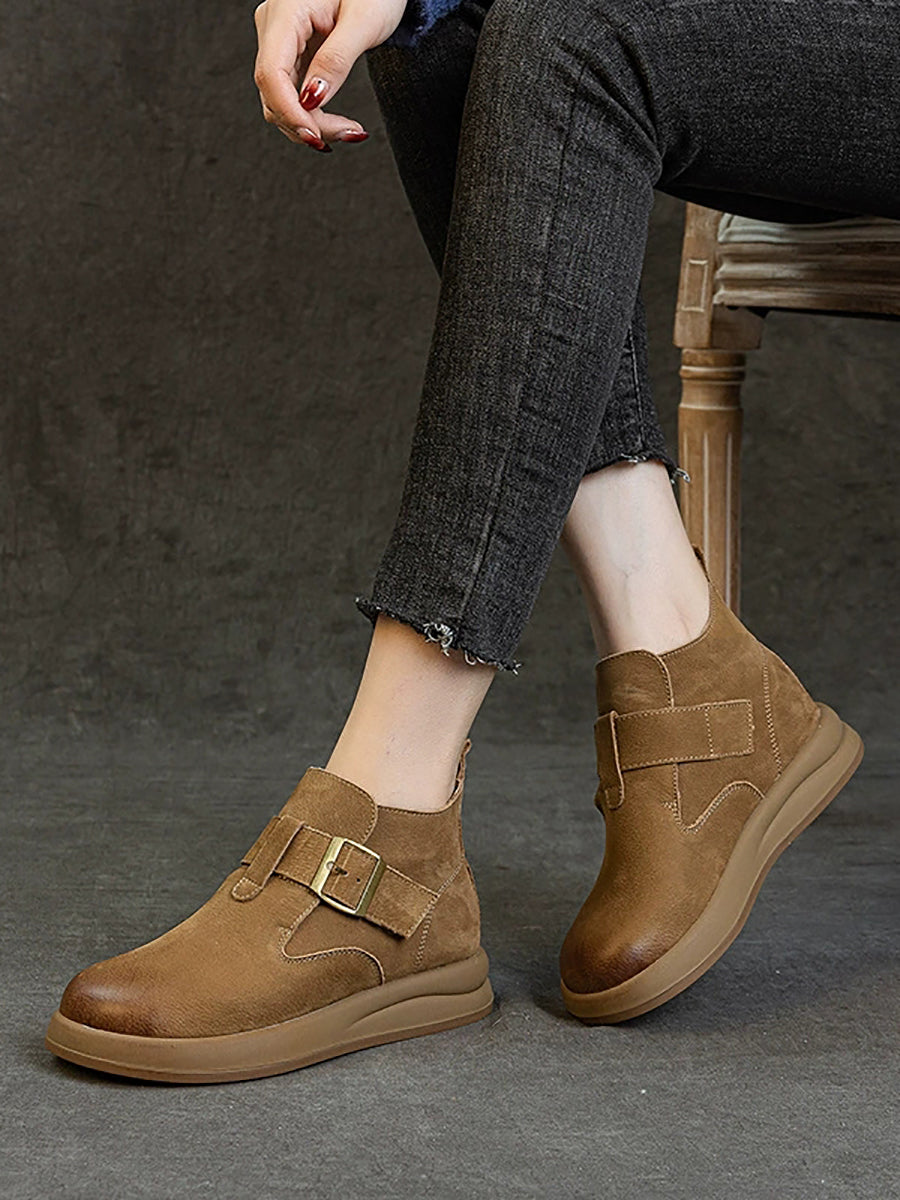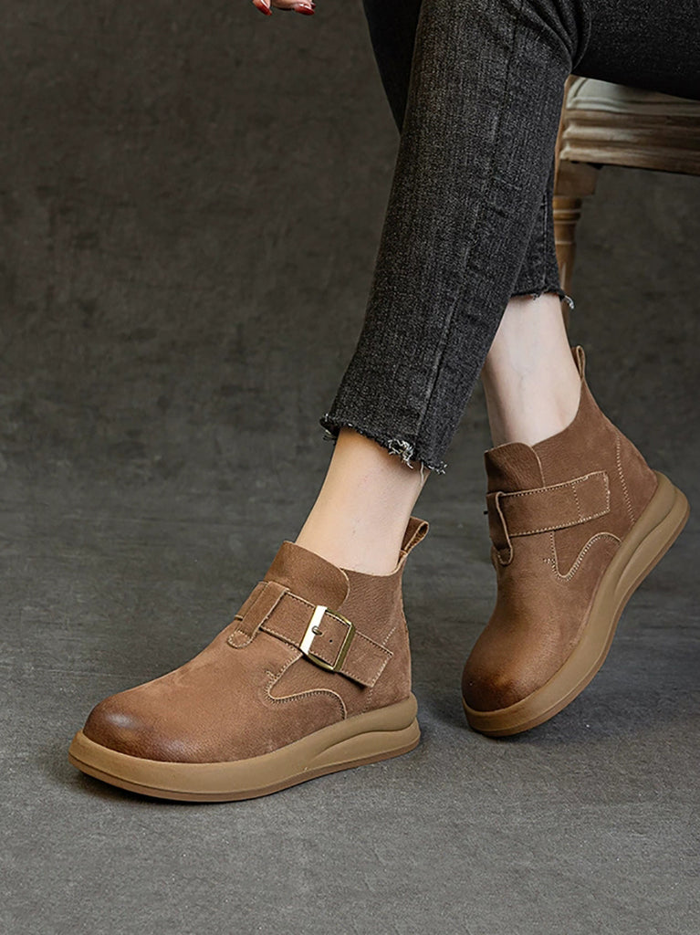 Botas de tornozelo femininas vintage em couro genuíno com detalhes em viés