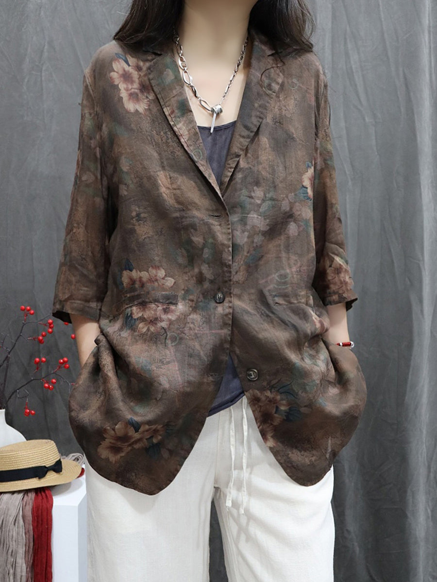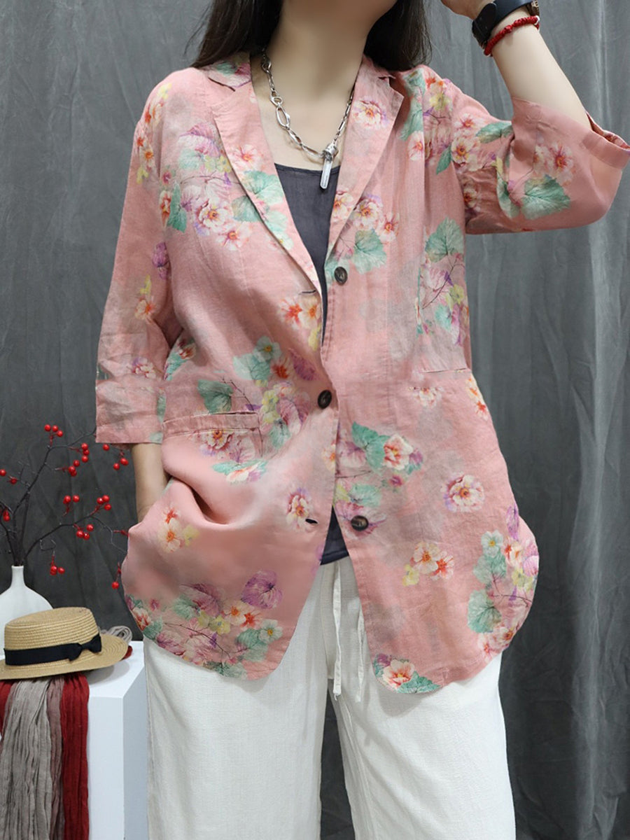 Casaco feminino de primavera com estampa floral, 100% rami, gola dobrável.