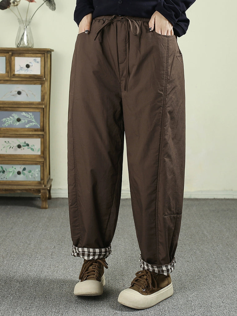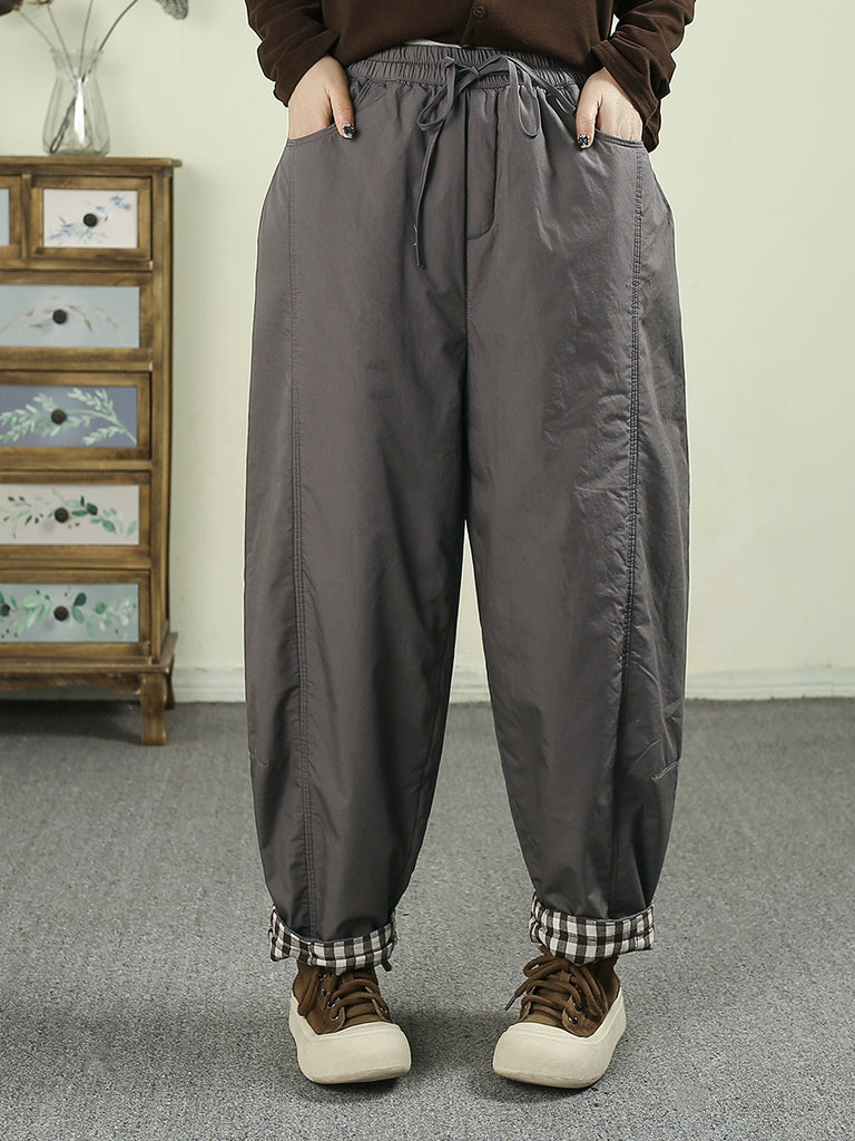 Calça Harem Acolchoada Feminina Retrô de Inverno em Cor Lisa