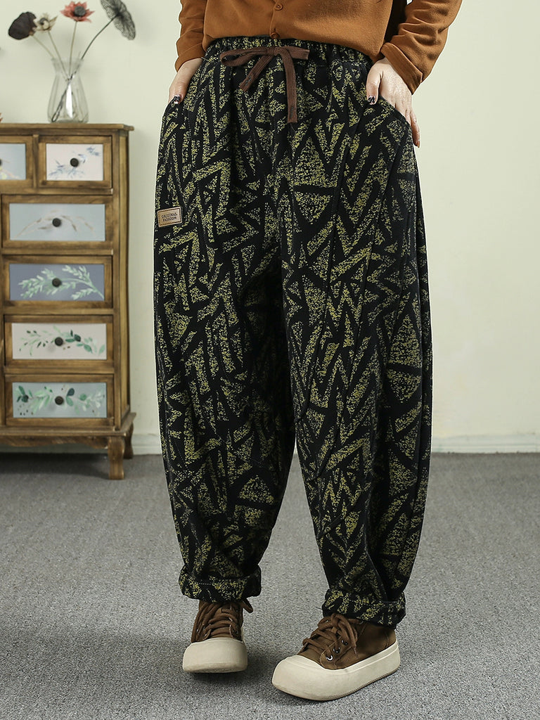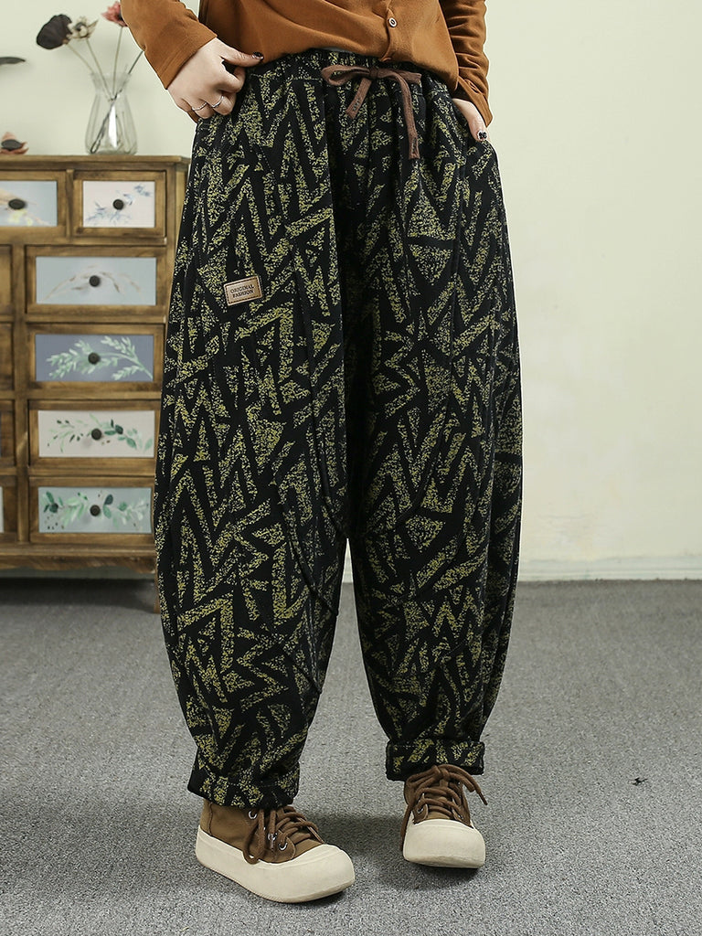 Calça Harem Feminina de Inverno com Estampa Geométrica Retrô e Forro de Lã