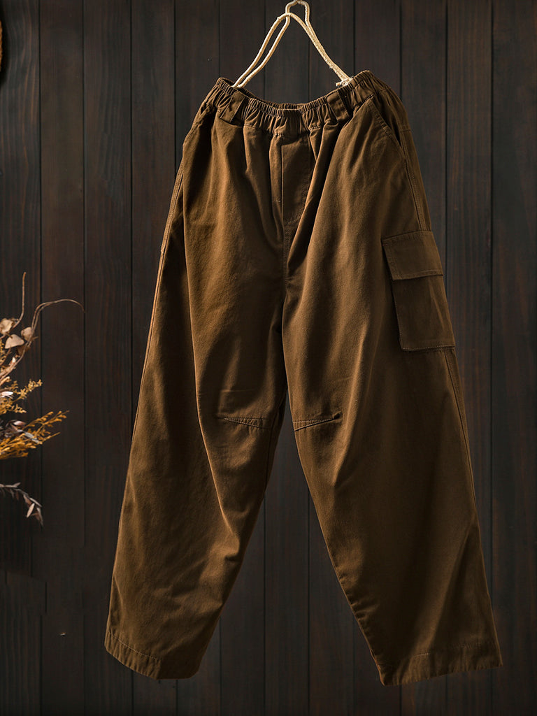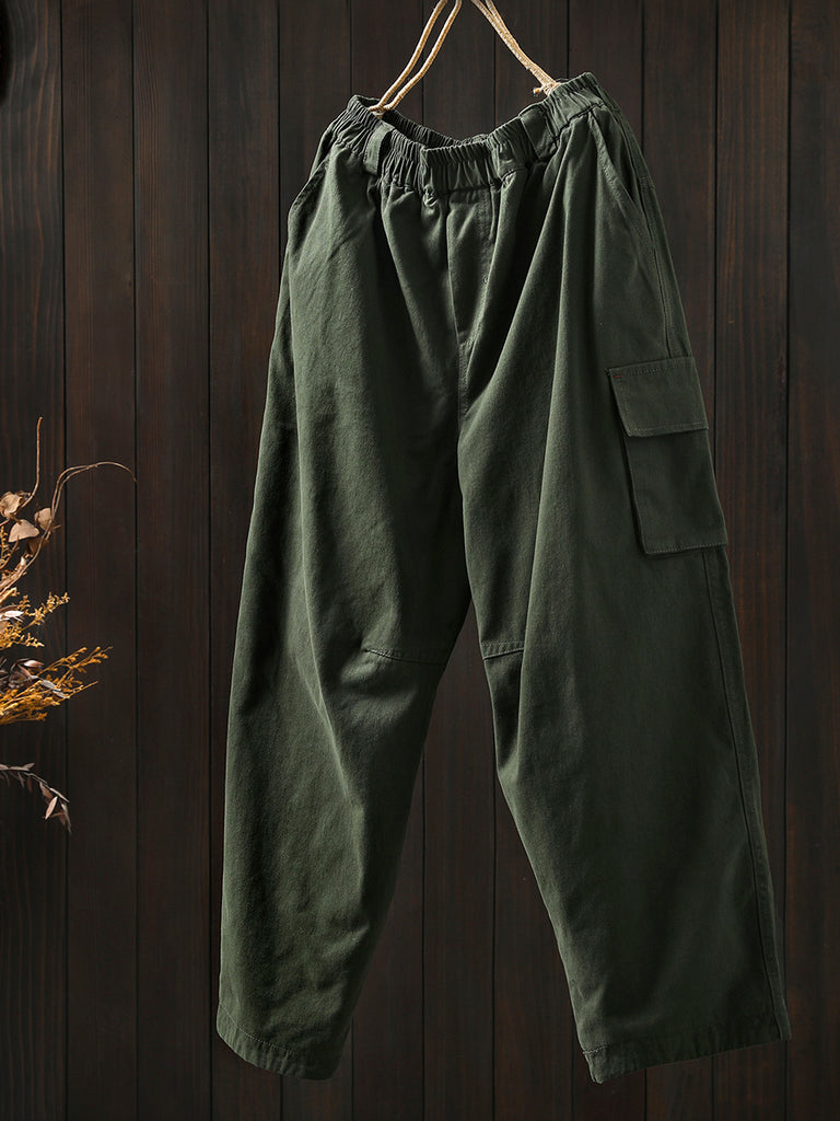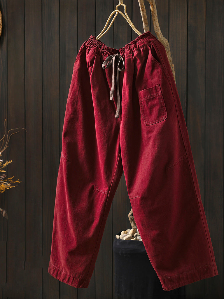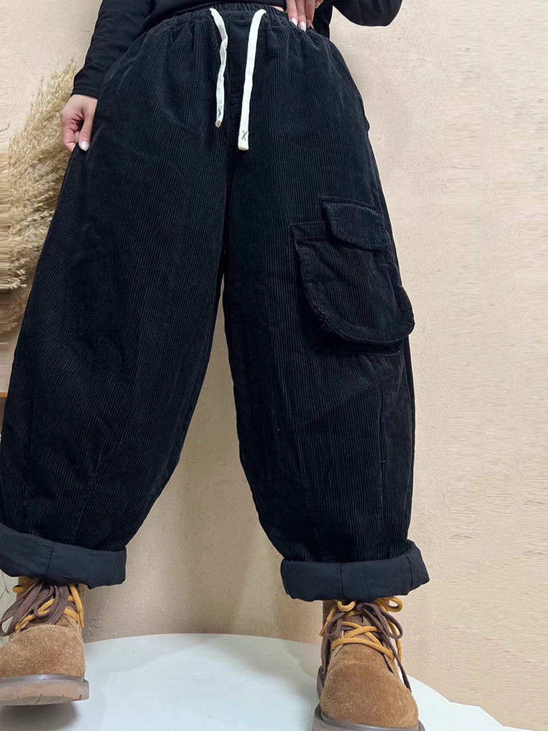 Calça Harem Feminina de Inverno Retrô em Veludo Cotelê Cor Sólida com Acolchoamento