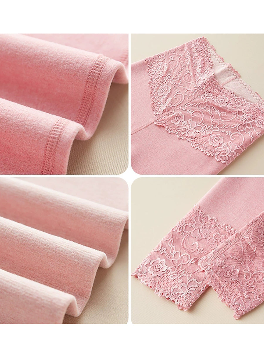 Leggings femininas de cintura alta com renda de cor pura de outono