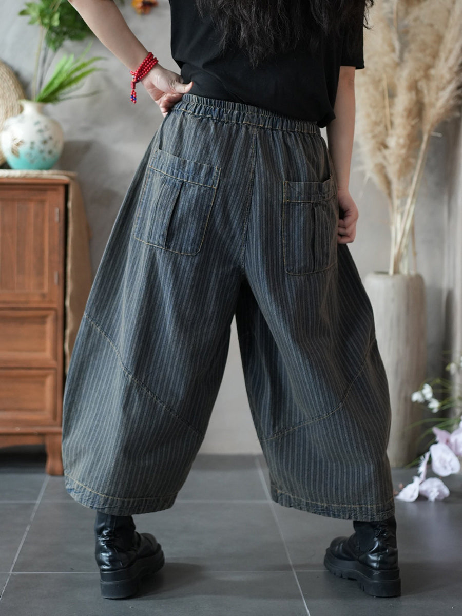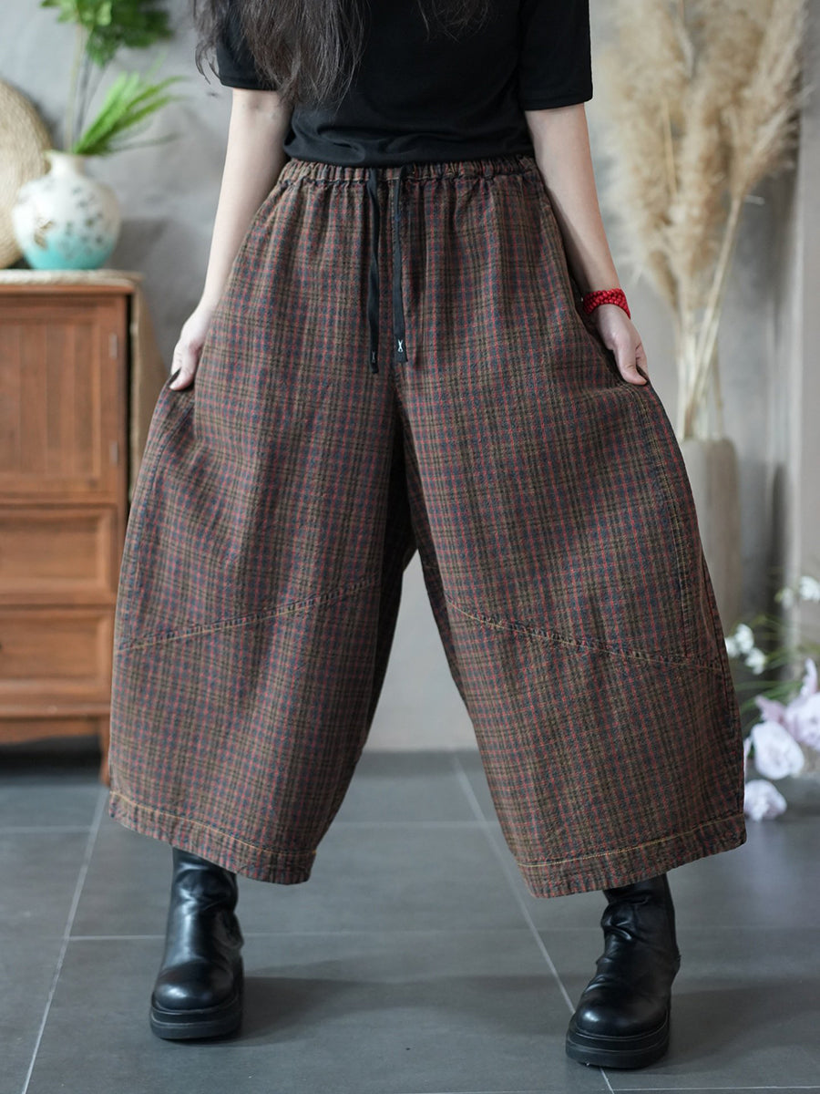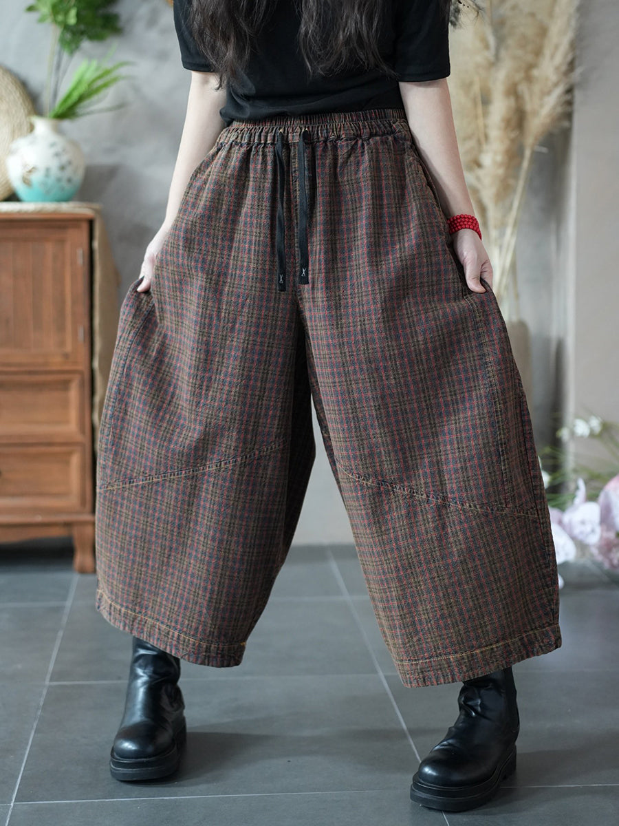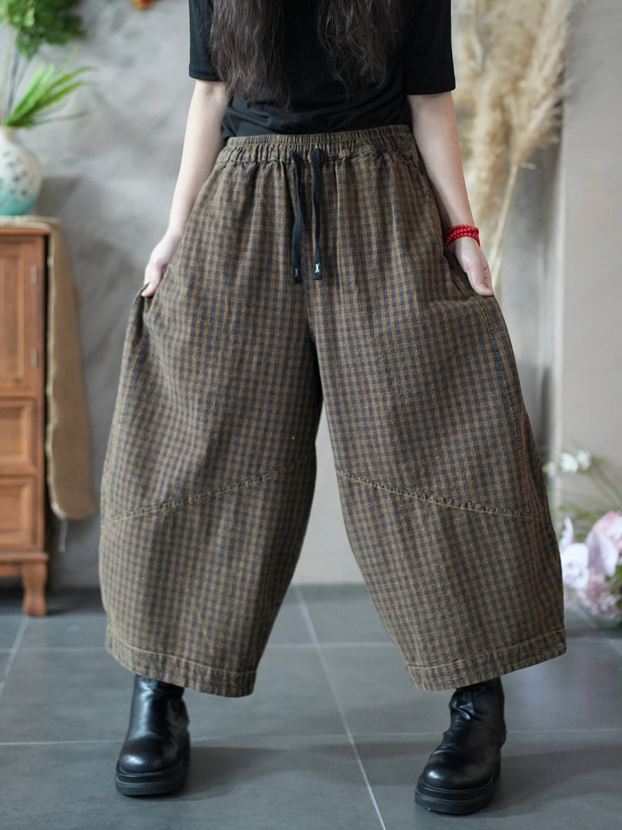 Calça feminina retrô de primavera, cor lisa, pernas largas