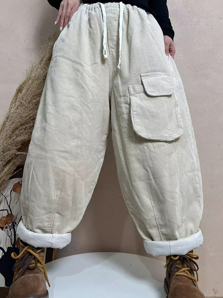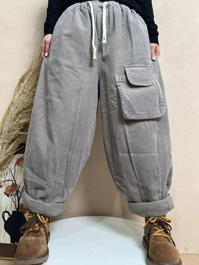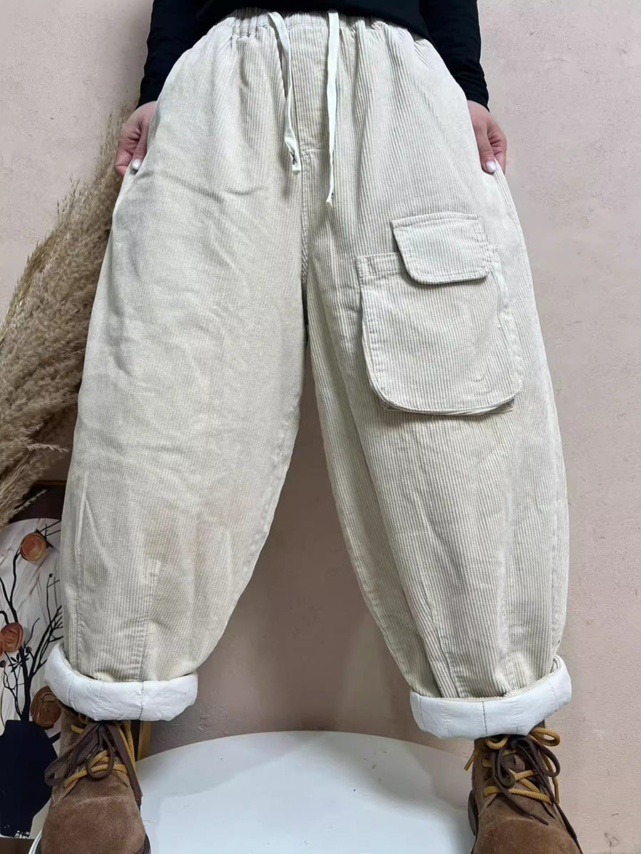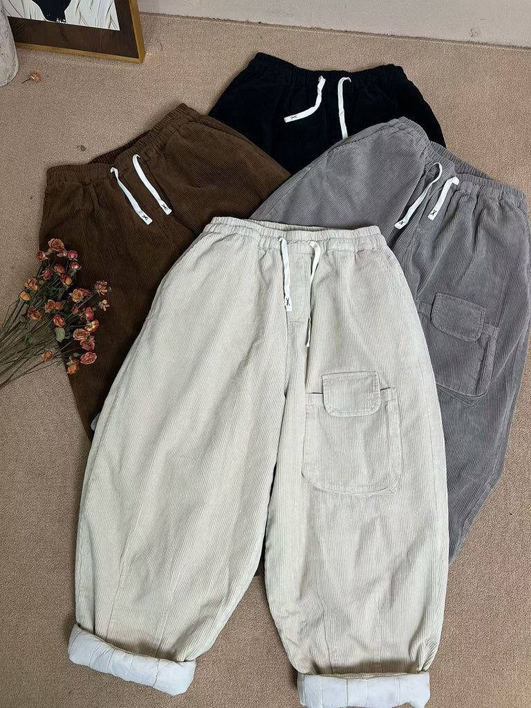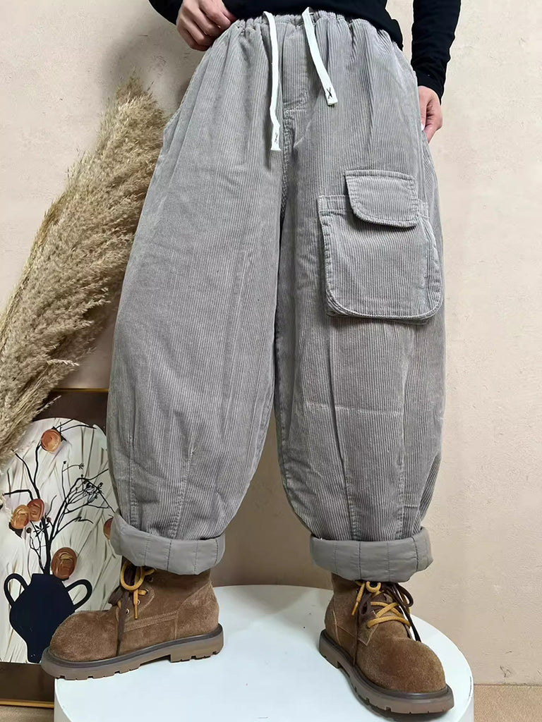 Calça Harem Acolchoada Feminina Retrô de Inverno em Cor Lisa