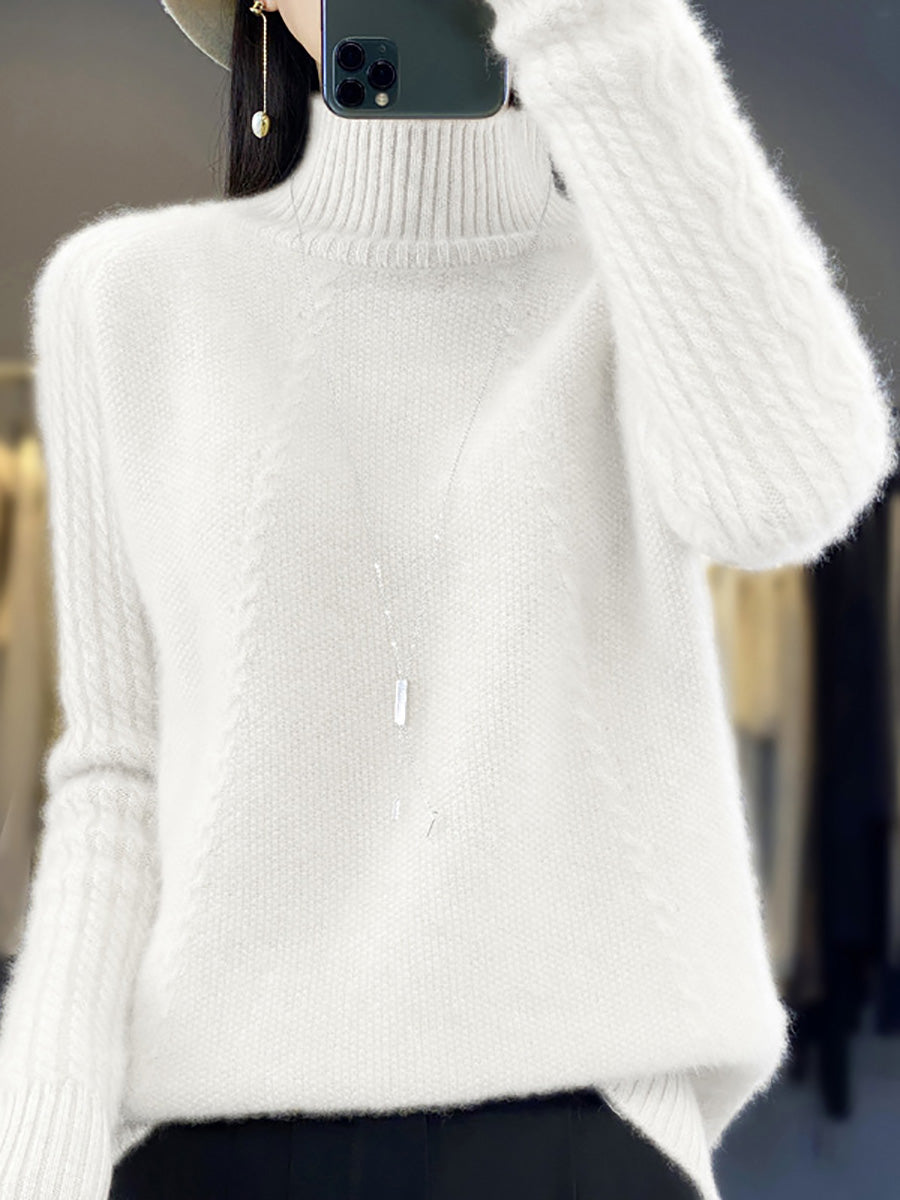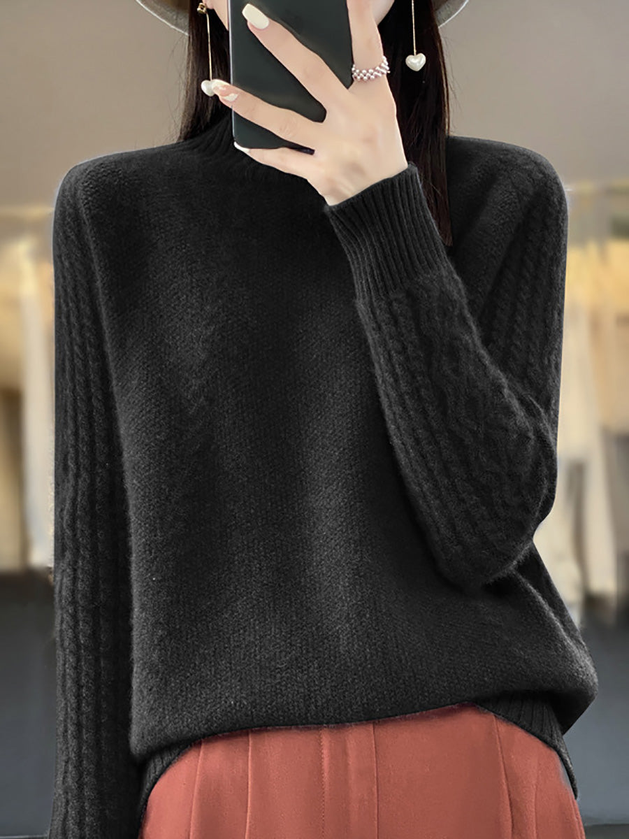 Suéter feminino de gola alta curta em lã, cor lisa, estilo artístico para o outono.
