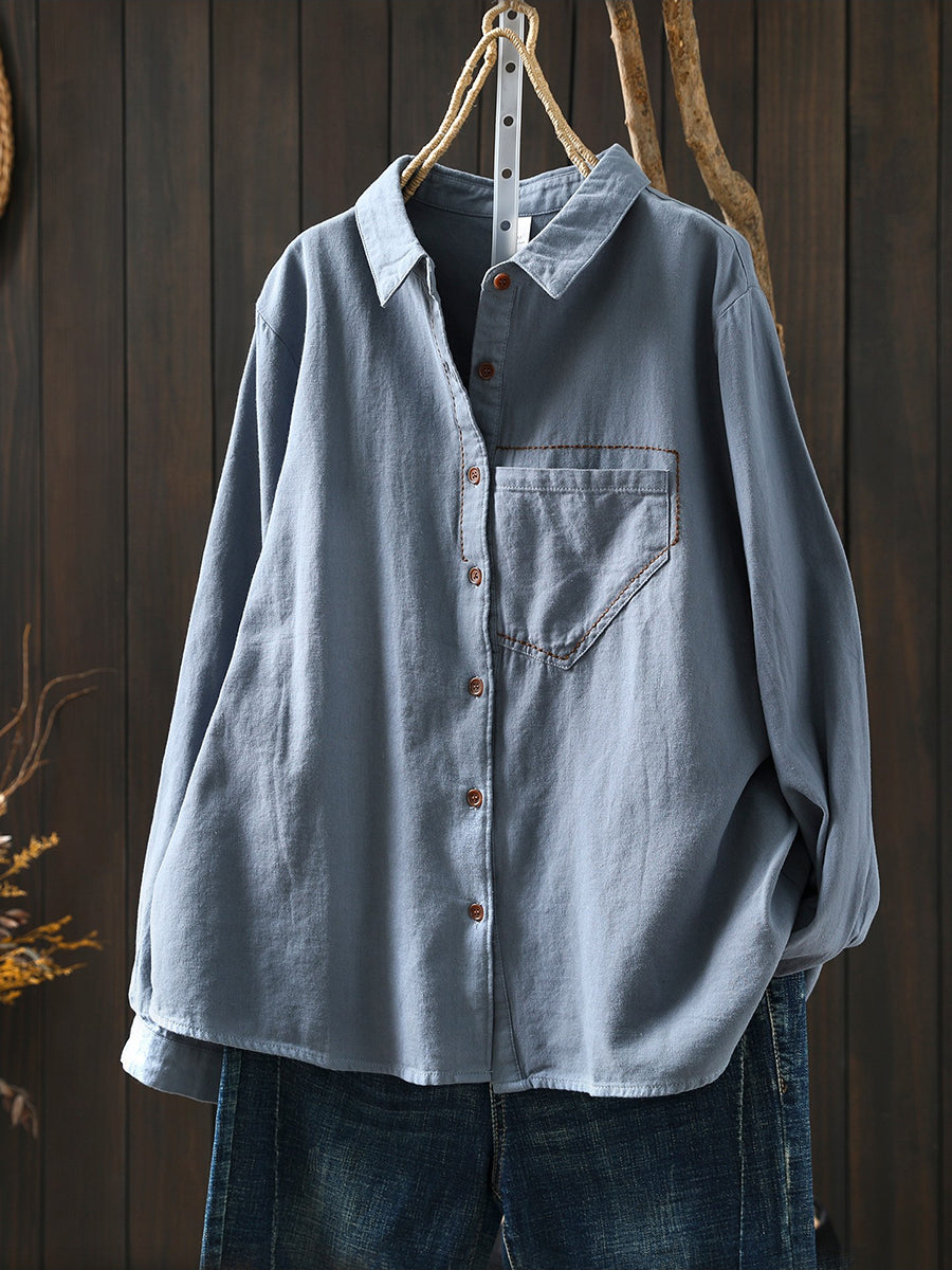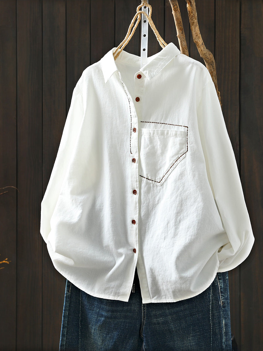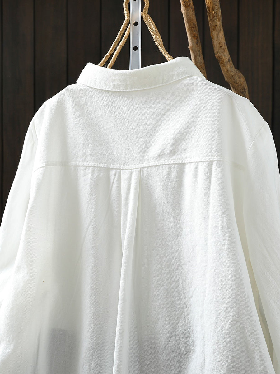 Camisa feminina de primavera com estampa artística, 100% algodão, gola dobrável.