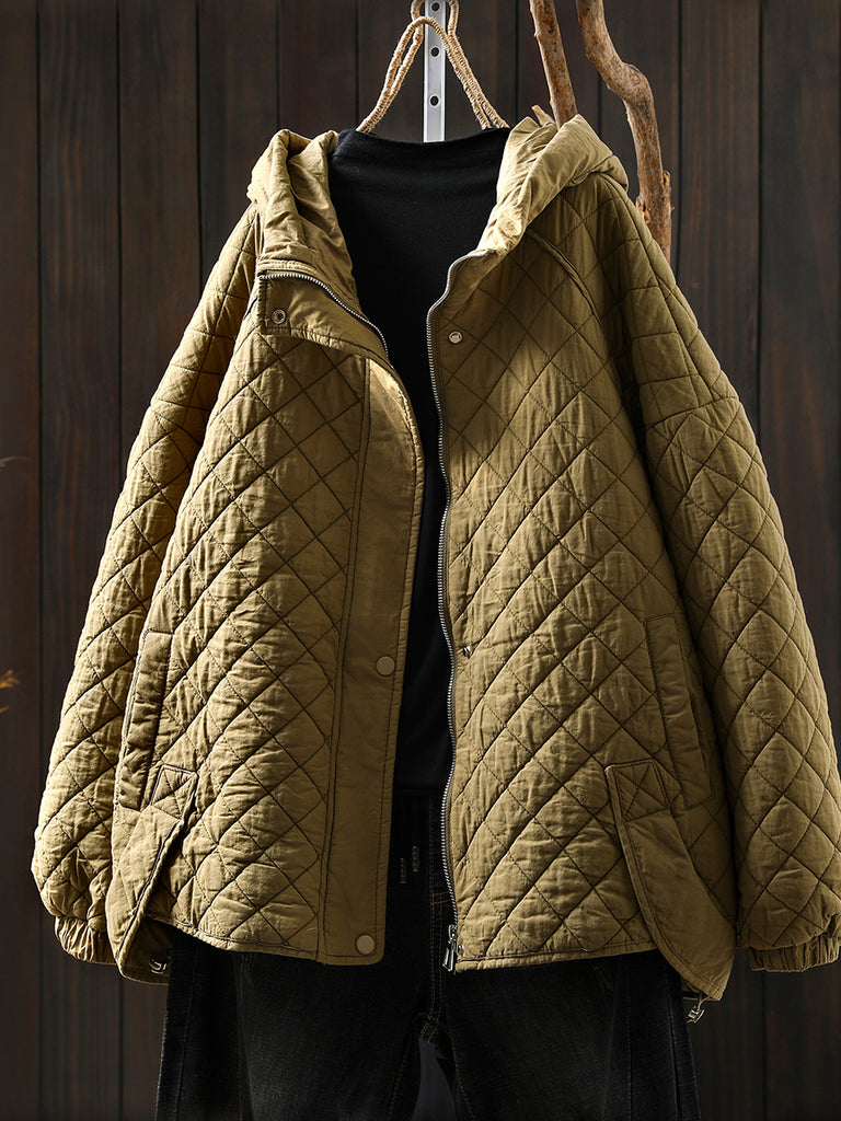 Casaco de algodão com capuz feminino casual de outono com losangos