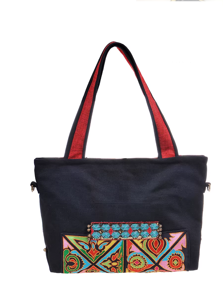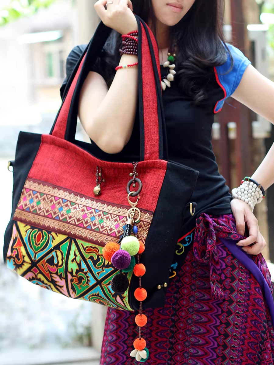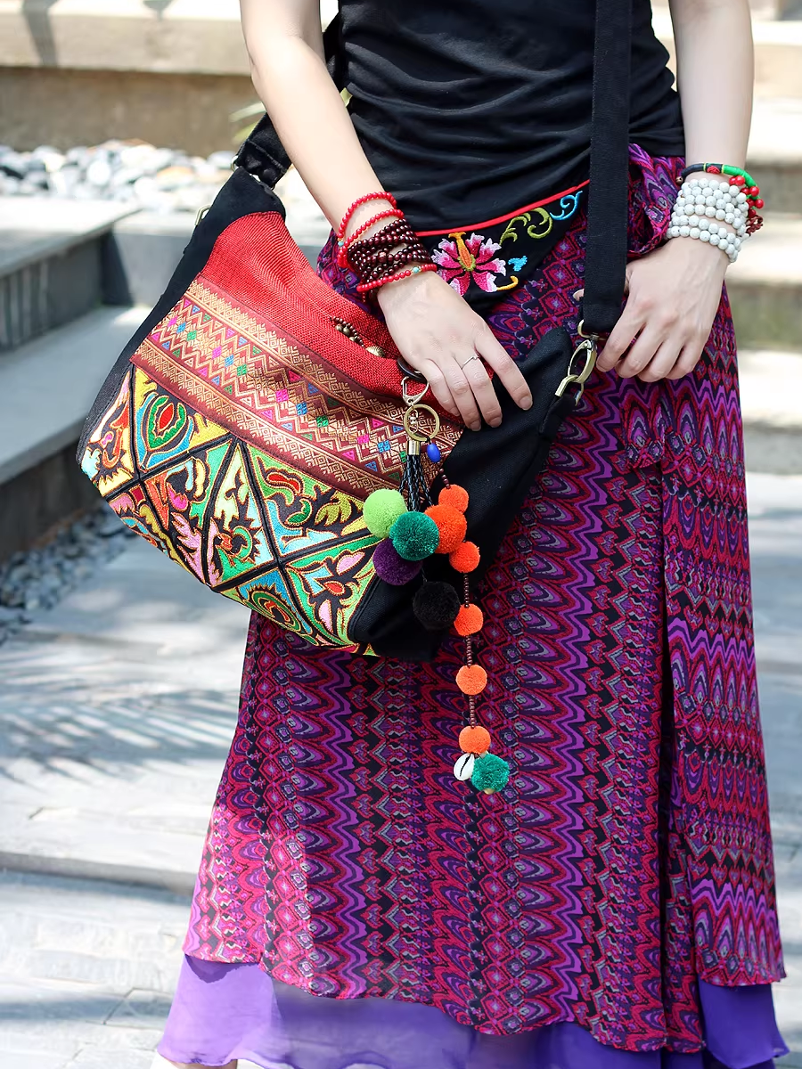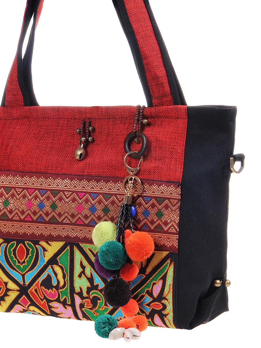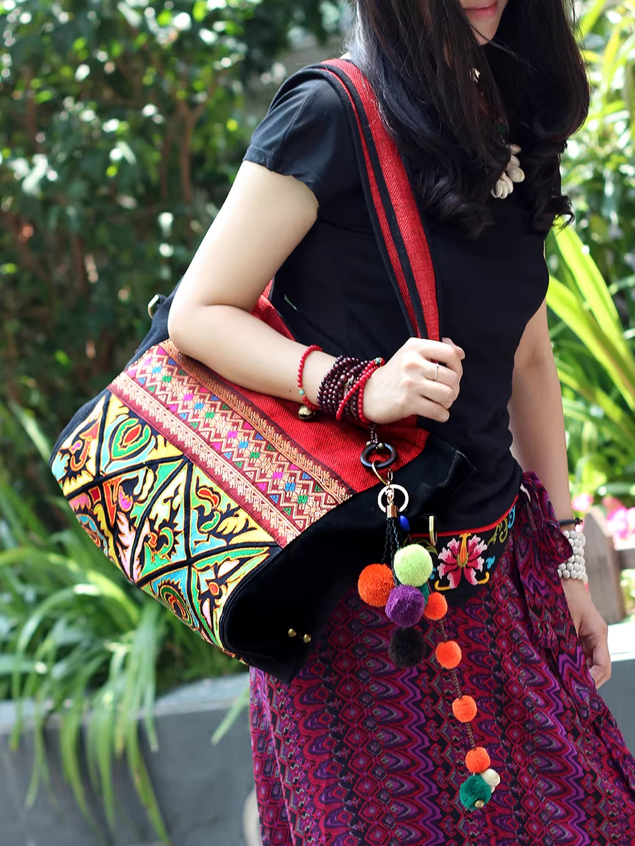 Bolsa de ombro com bordado étnico