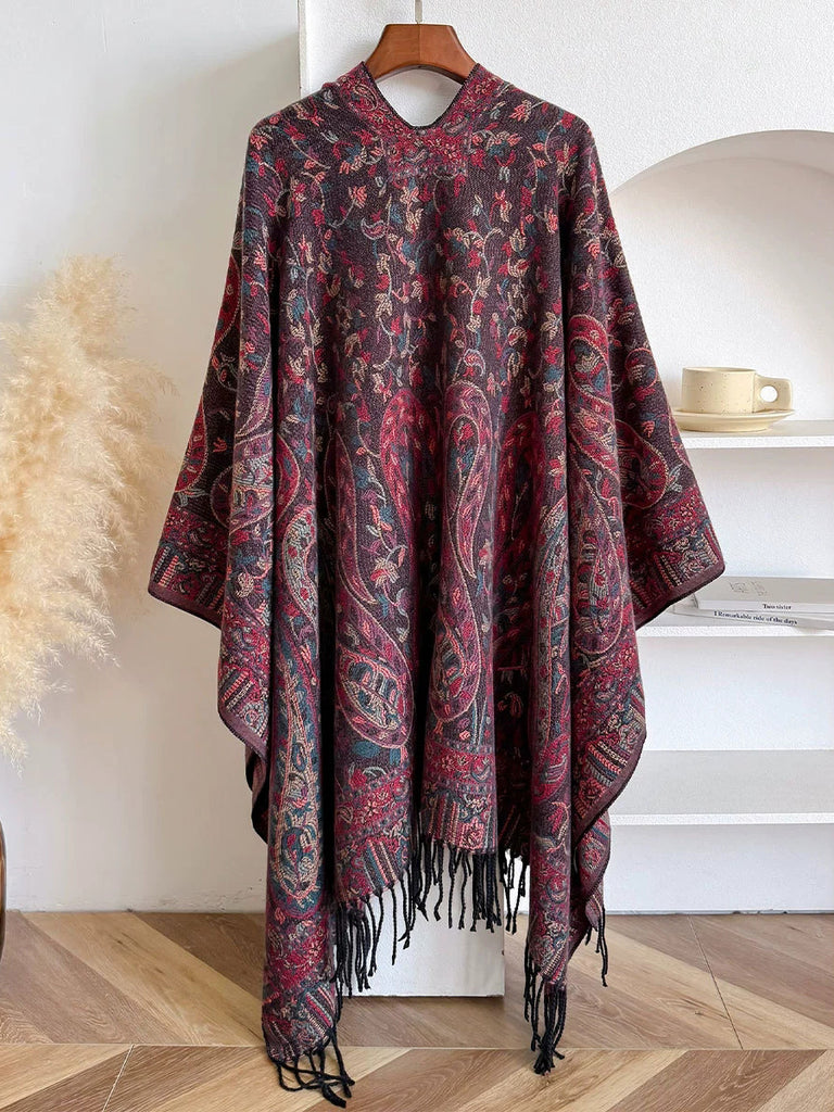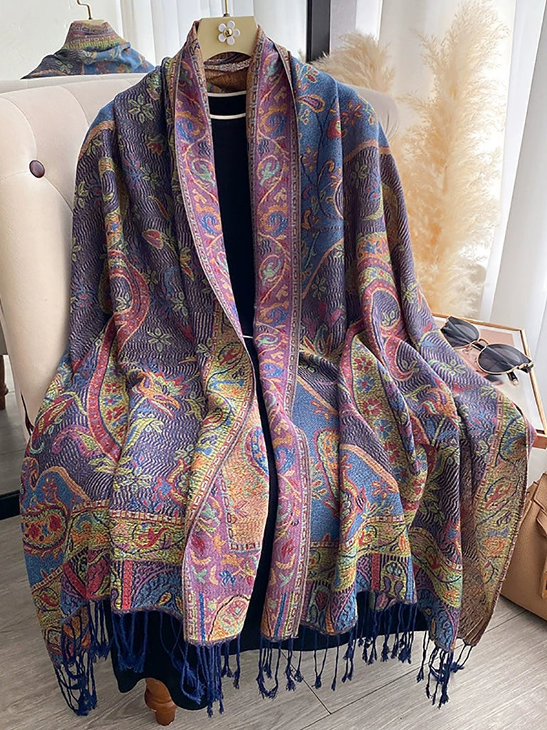 Xale/Cachecol Feminino de Inverno com Borlas de Flores Étnicas