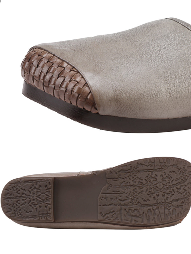 Sapatos femininos de couro macio e salto baixo com bico quadrado