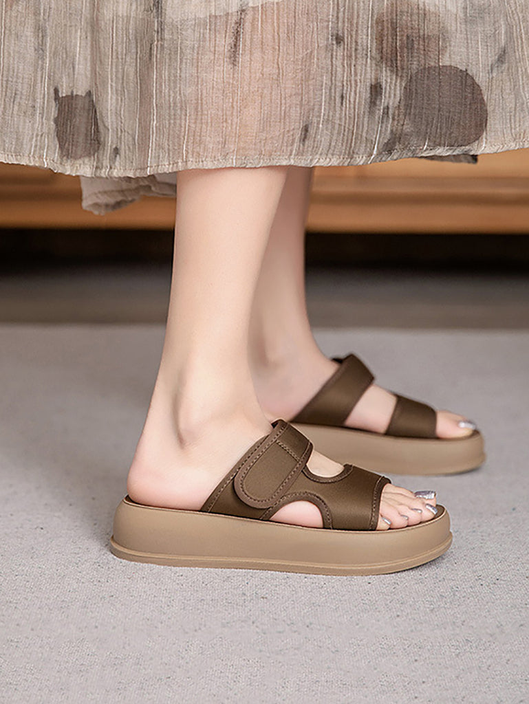 Pantufas femininas casuais de verão em couro legítimo com plataforma