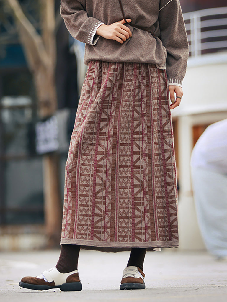 Saia feminina de algodão jacquard retrô em formato A para o outono
