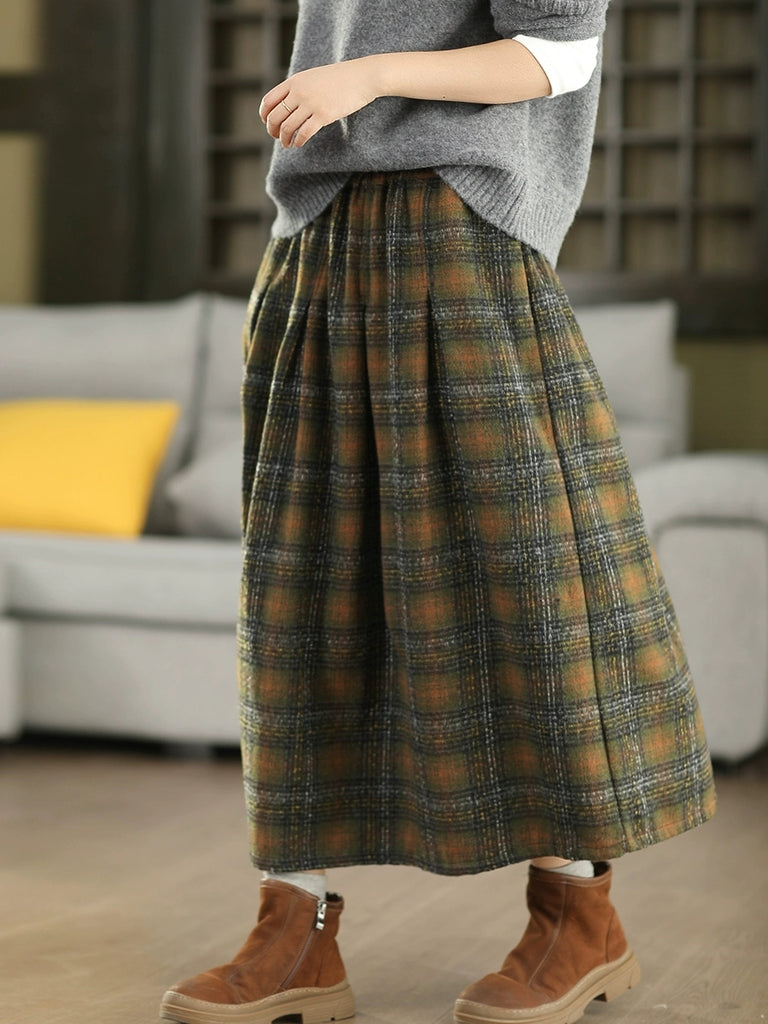 Plus size primavera cintura elástica xadrez solta saia longa vintage M-2XL