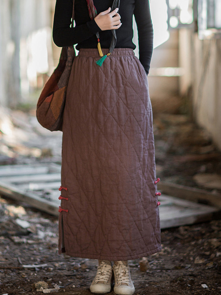 Saia feminina étnica de outono, cor lisa, corte em A, em rami com bojo.