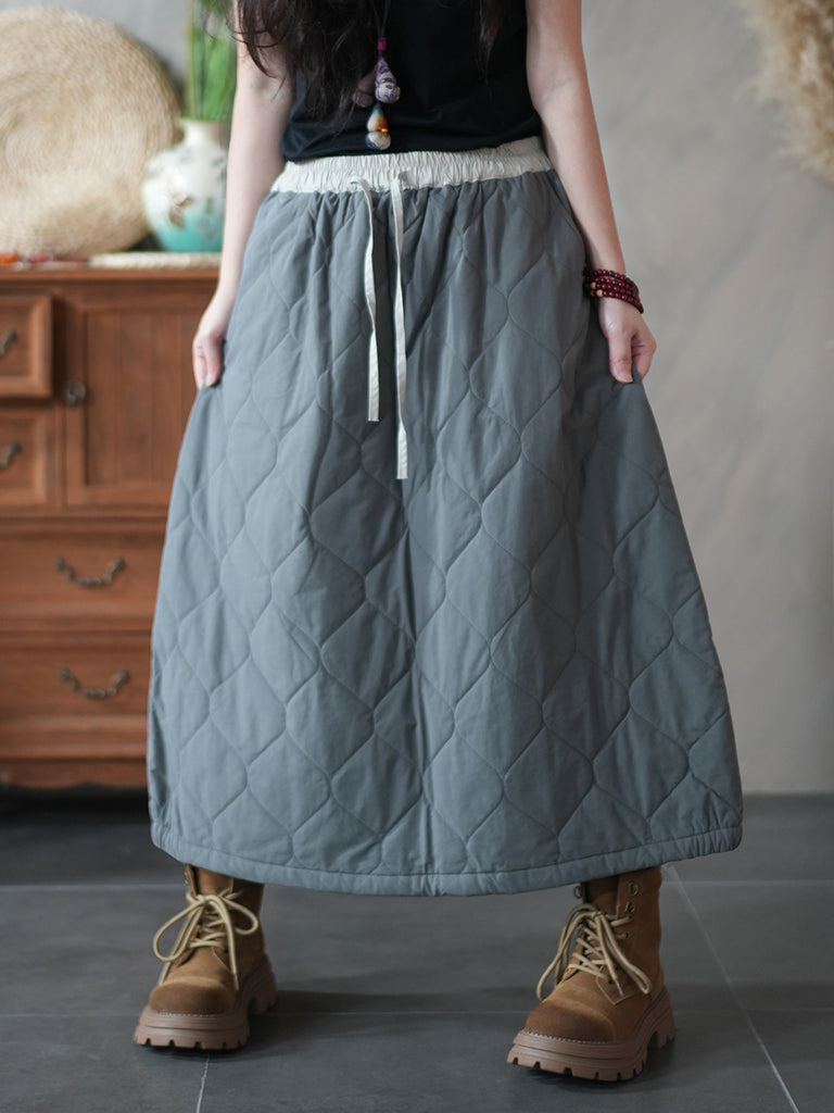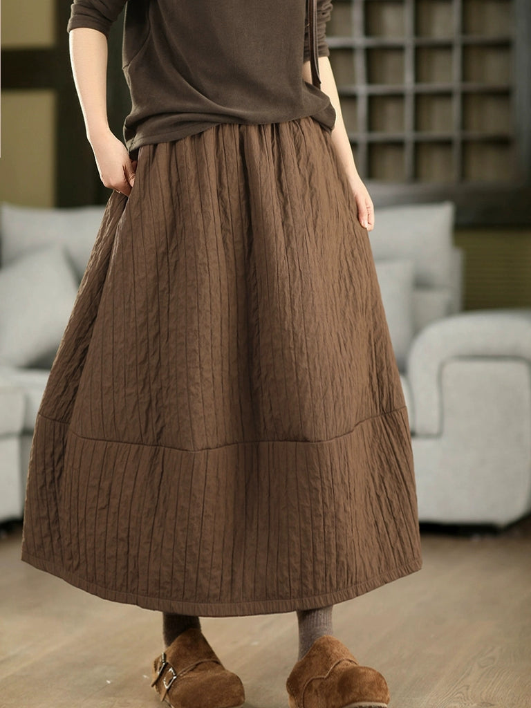 Saia acolchoada casual feminina de cor lisa para o outono