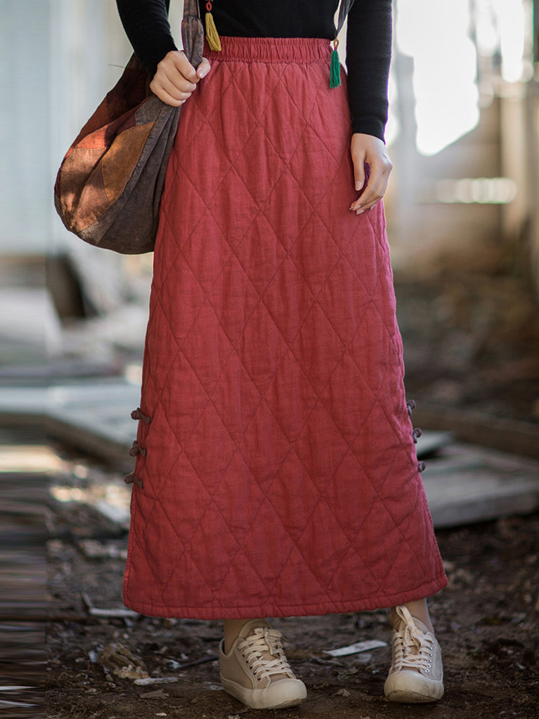 Plus Size Algodão Primavera Verão Cintura Elástica Saia Solta