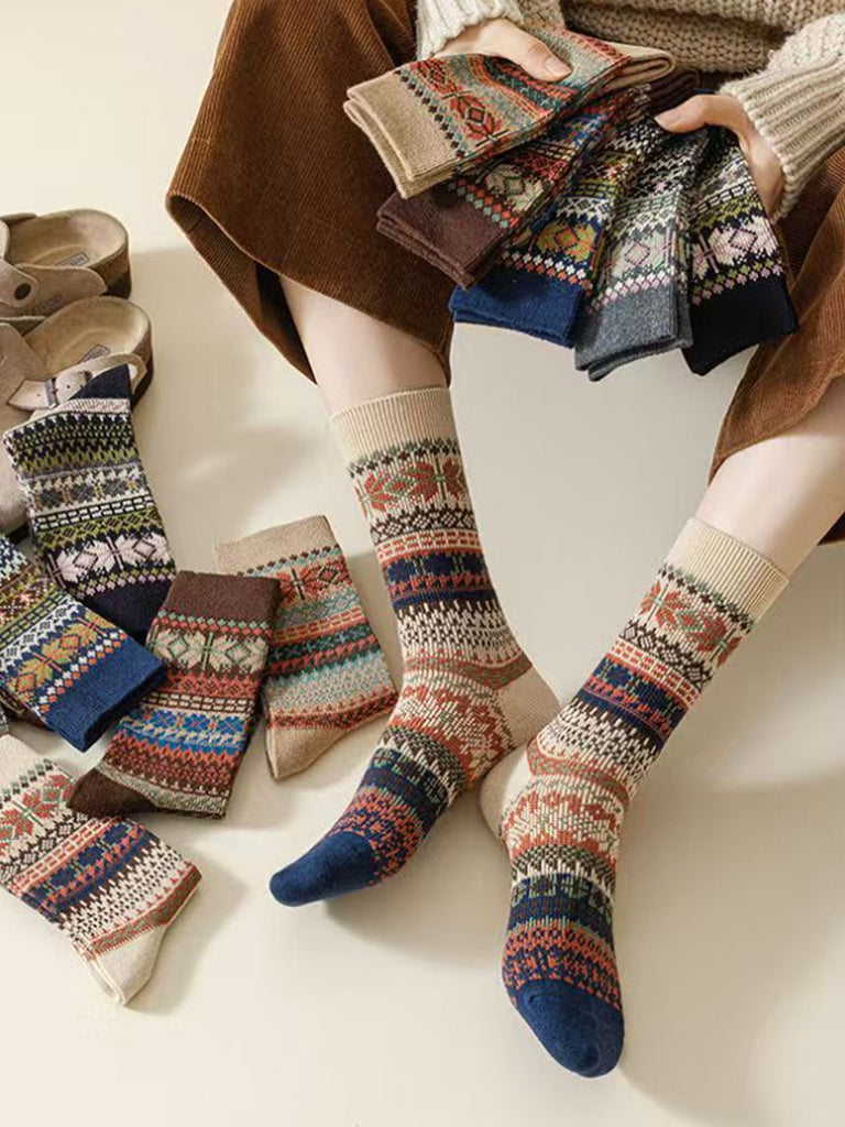 Meias femininas de malha casual vintage grossas e quentes de algodão