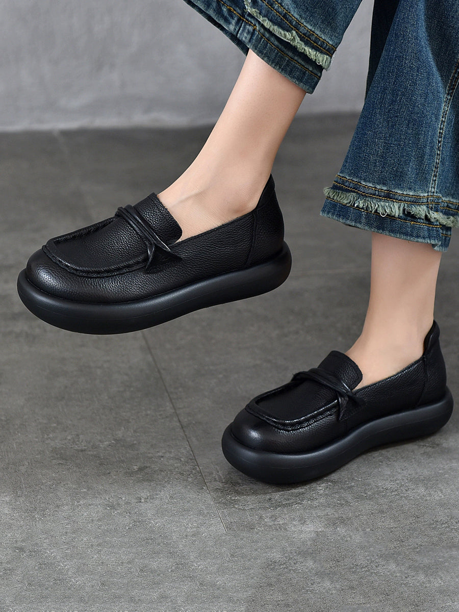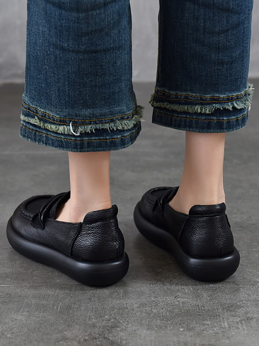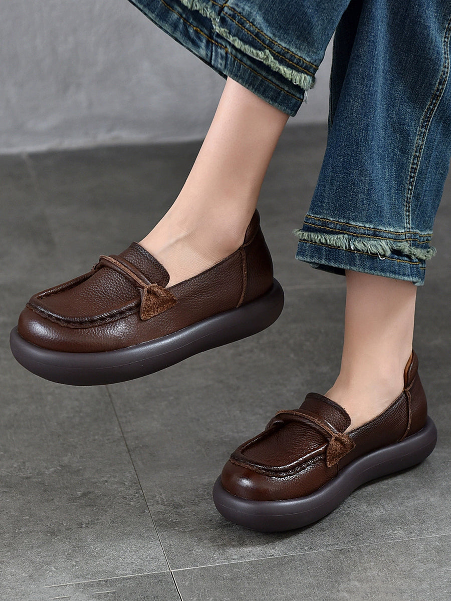 Sapatos femininos casuais de primavera em couro legítimo, modelo baixo.