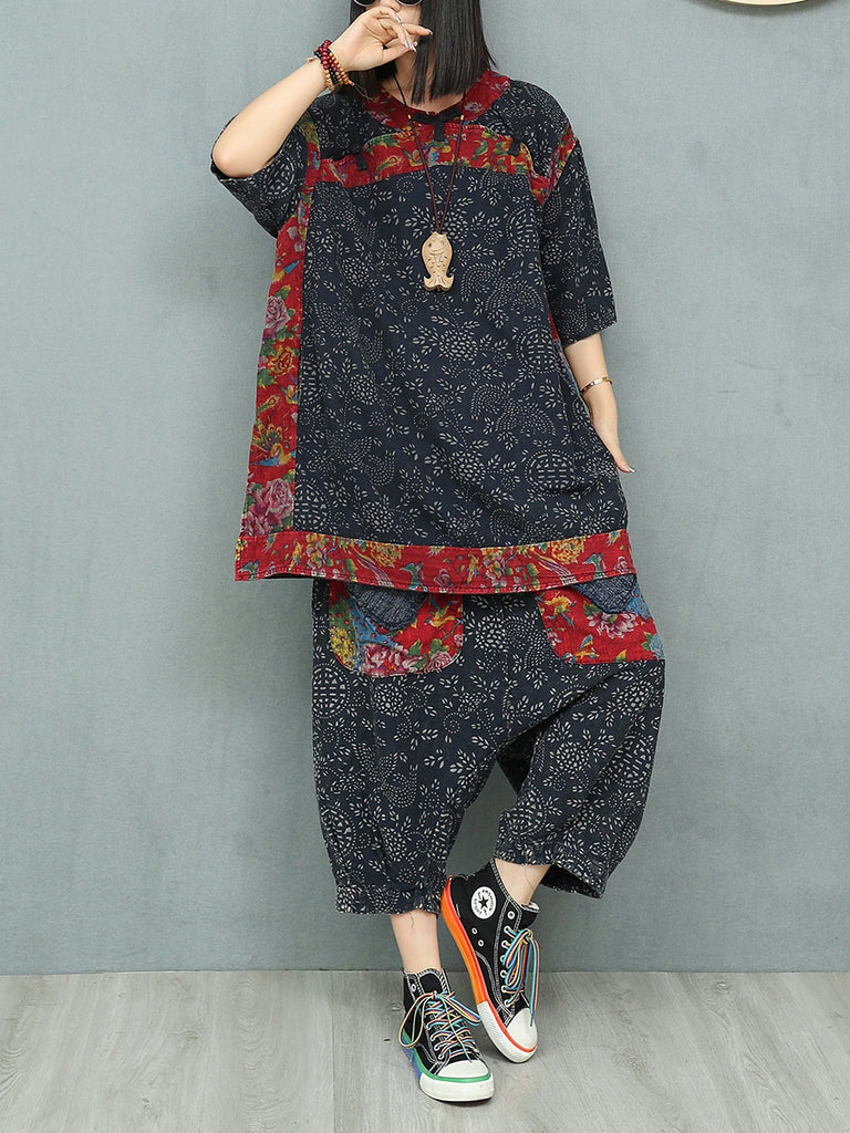 Terno solto plus size feminino de verão, vintage, patchwork