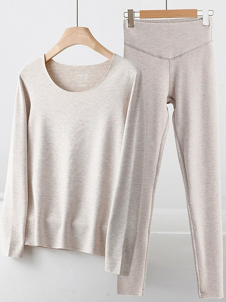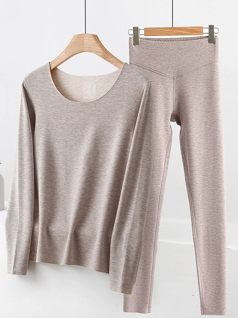 Conjunto feminino casual de outono em cor lisa com decote em V.