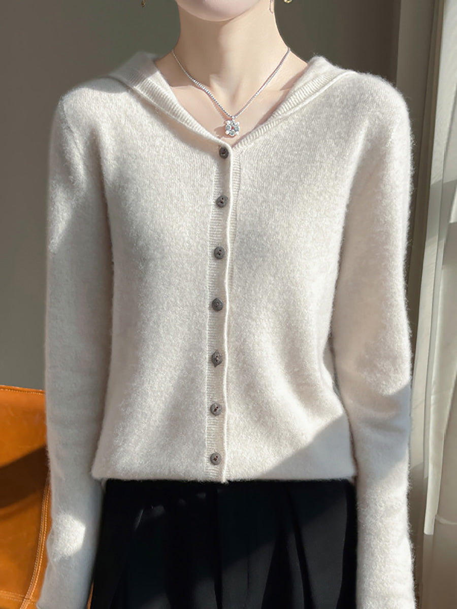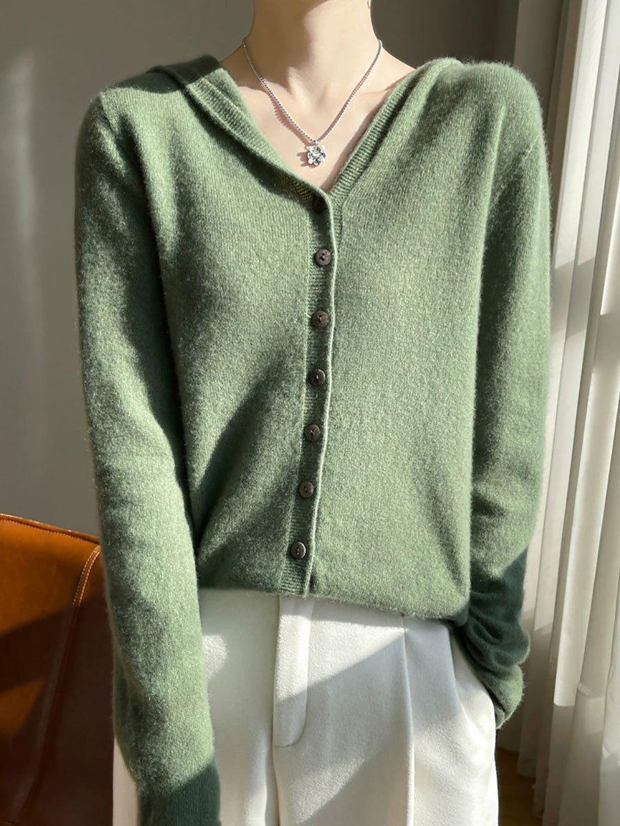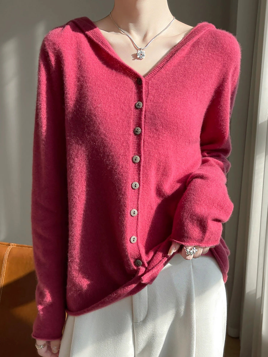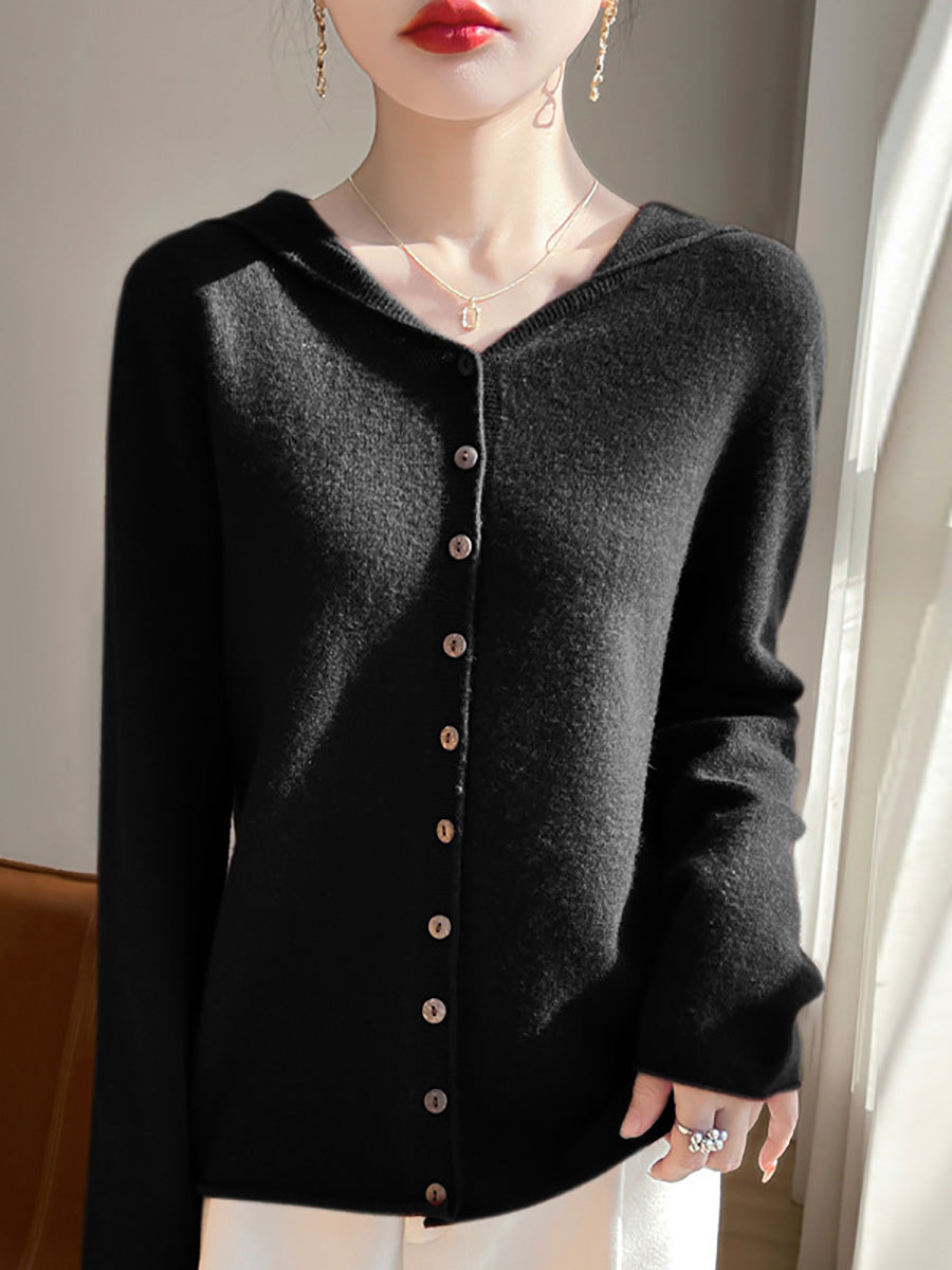 Suéter feminino com capuz em cores puras e estilo artístico para o outono.
