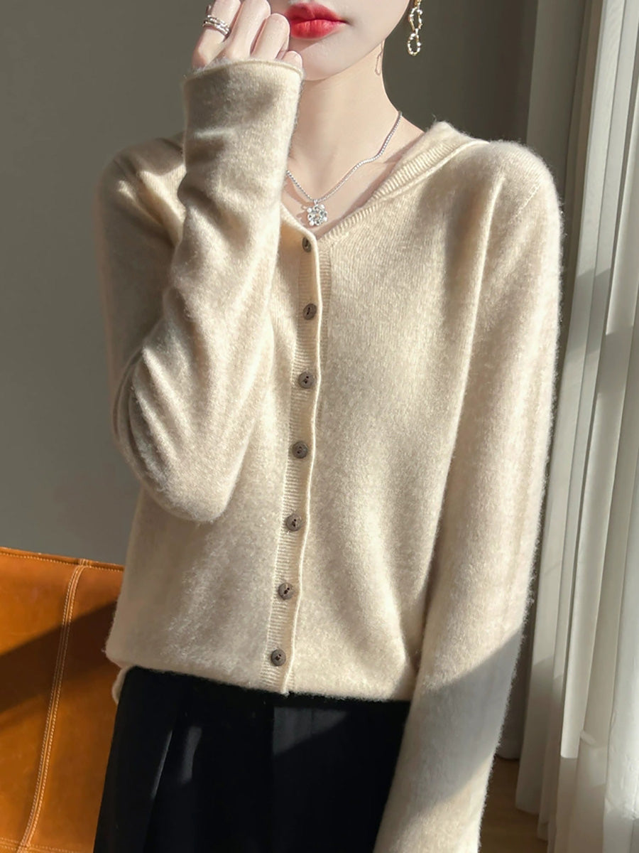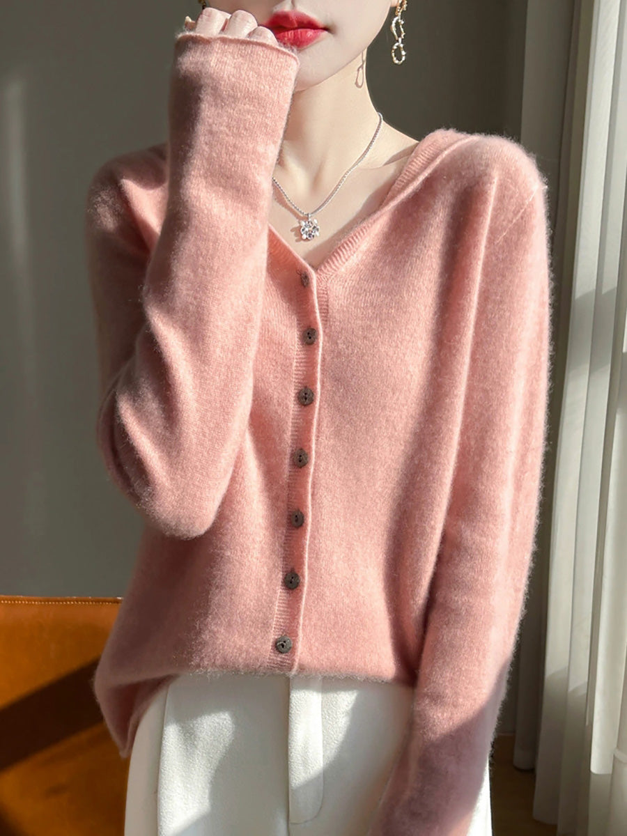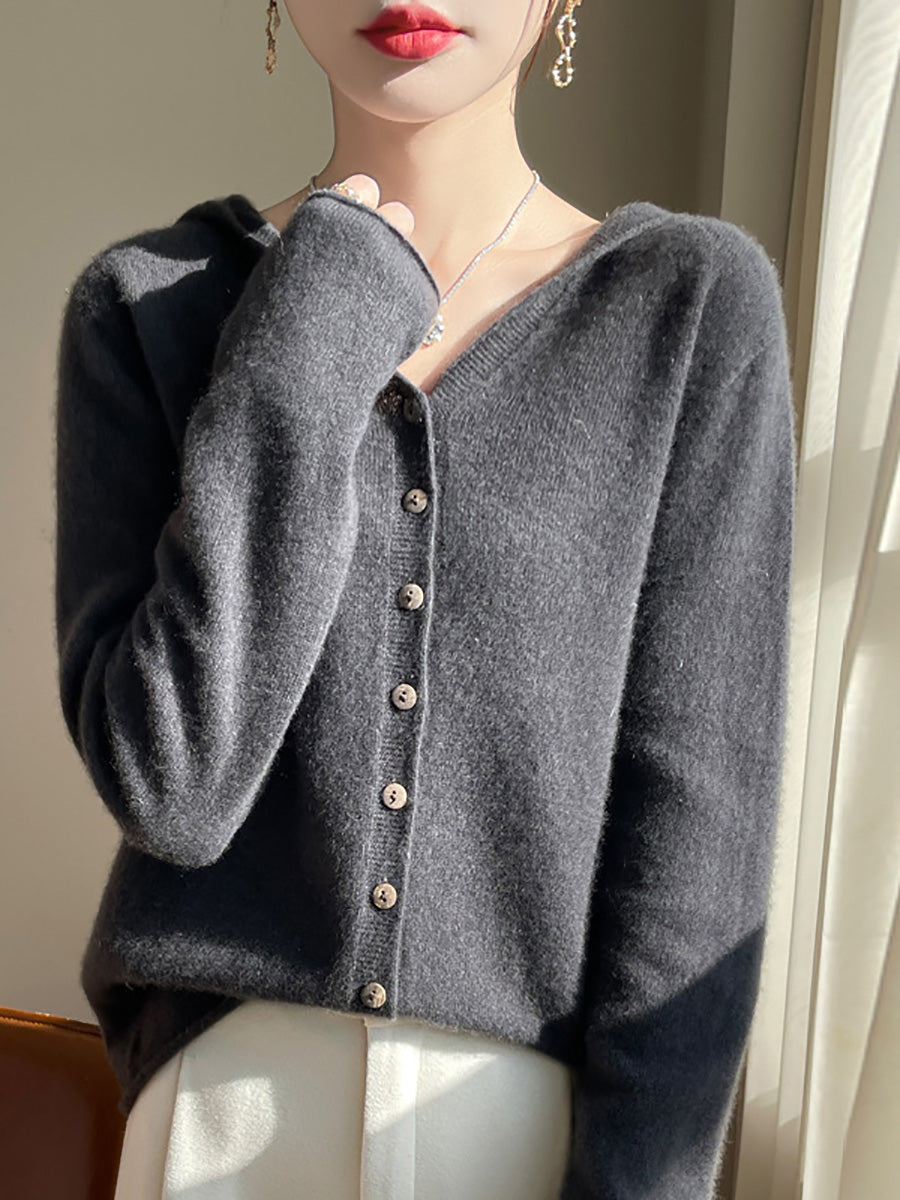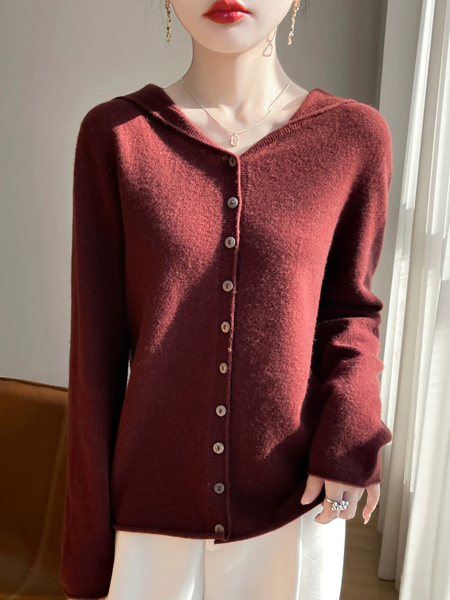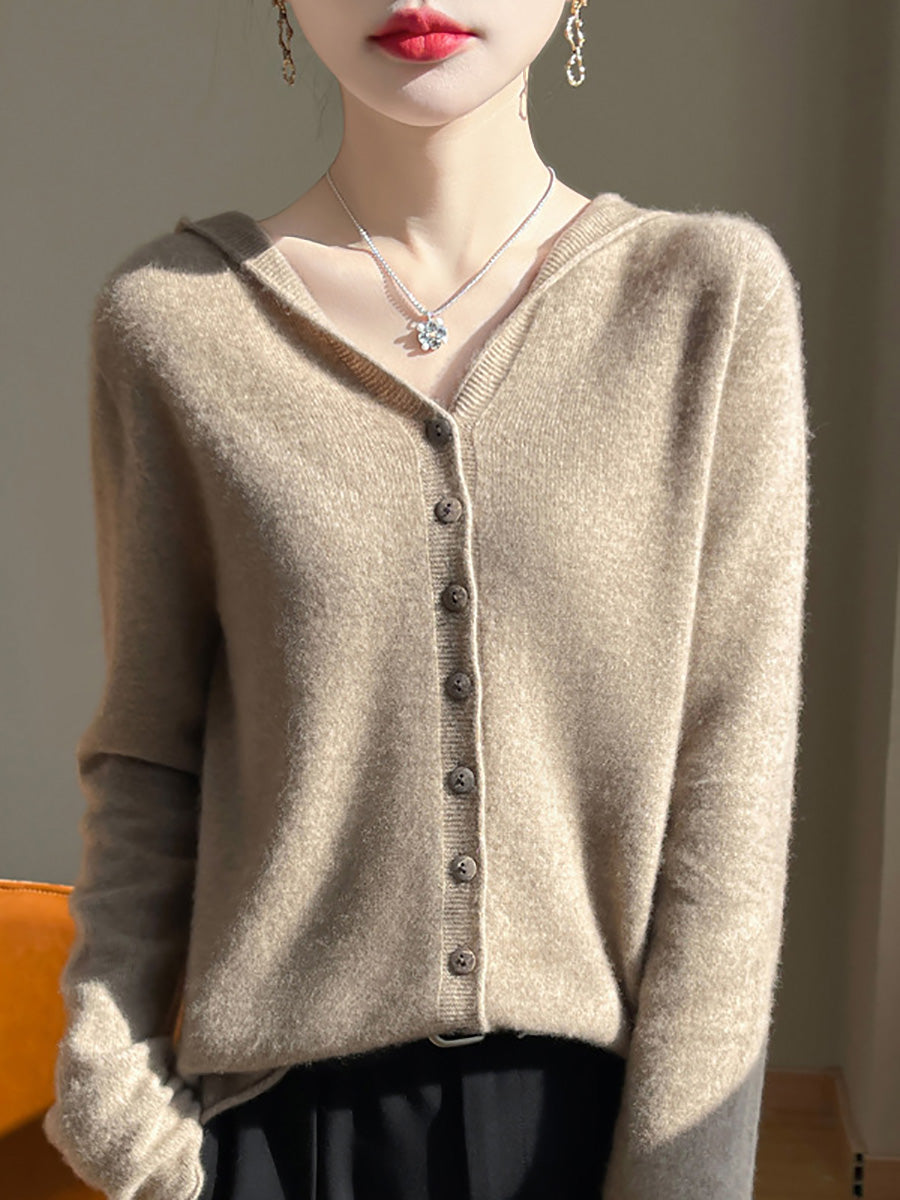 Suéter feminino com capuz em cores puras e estilo artístico para o outono.