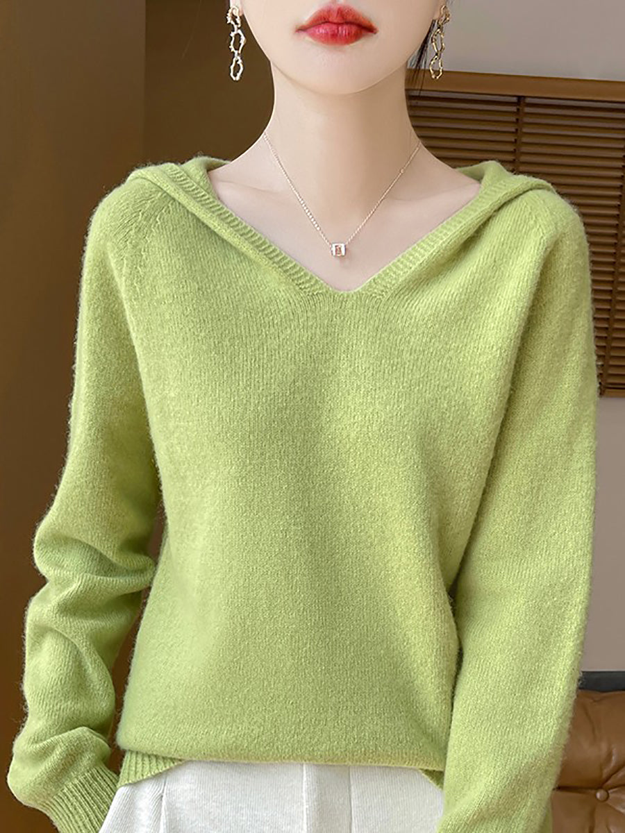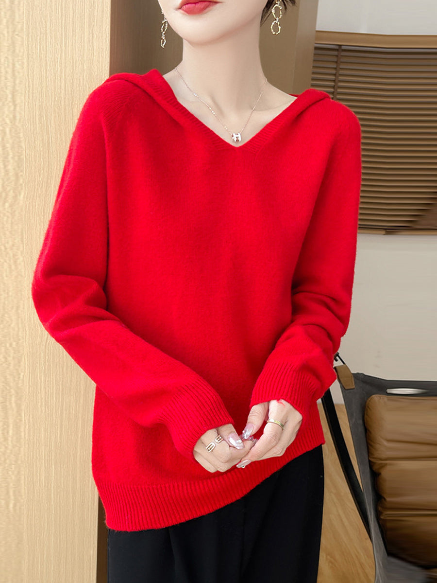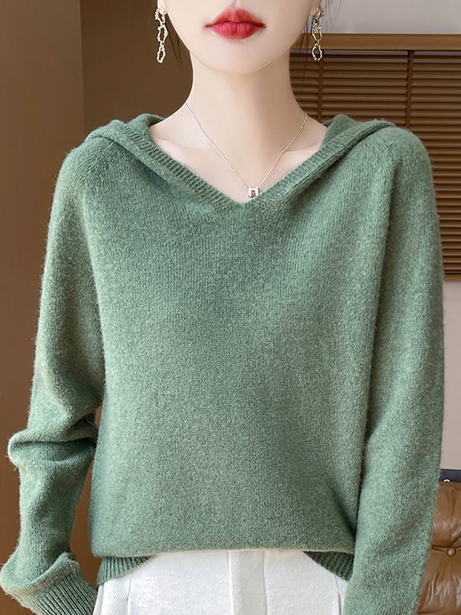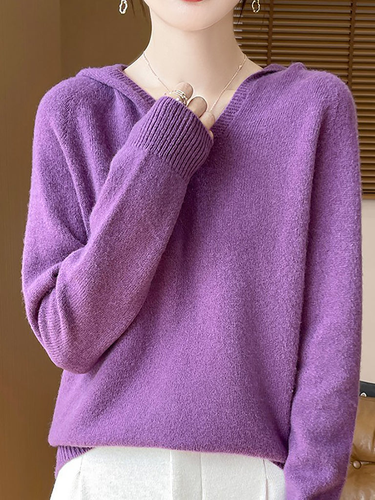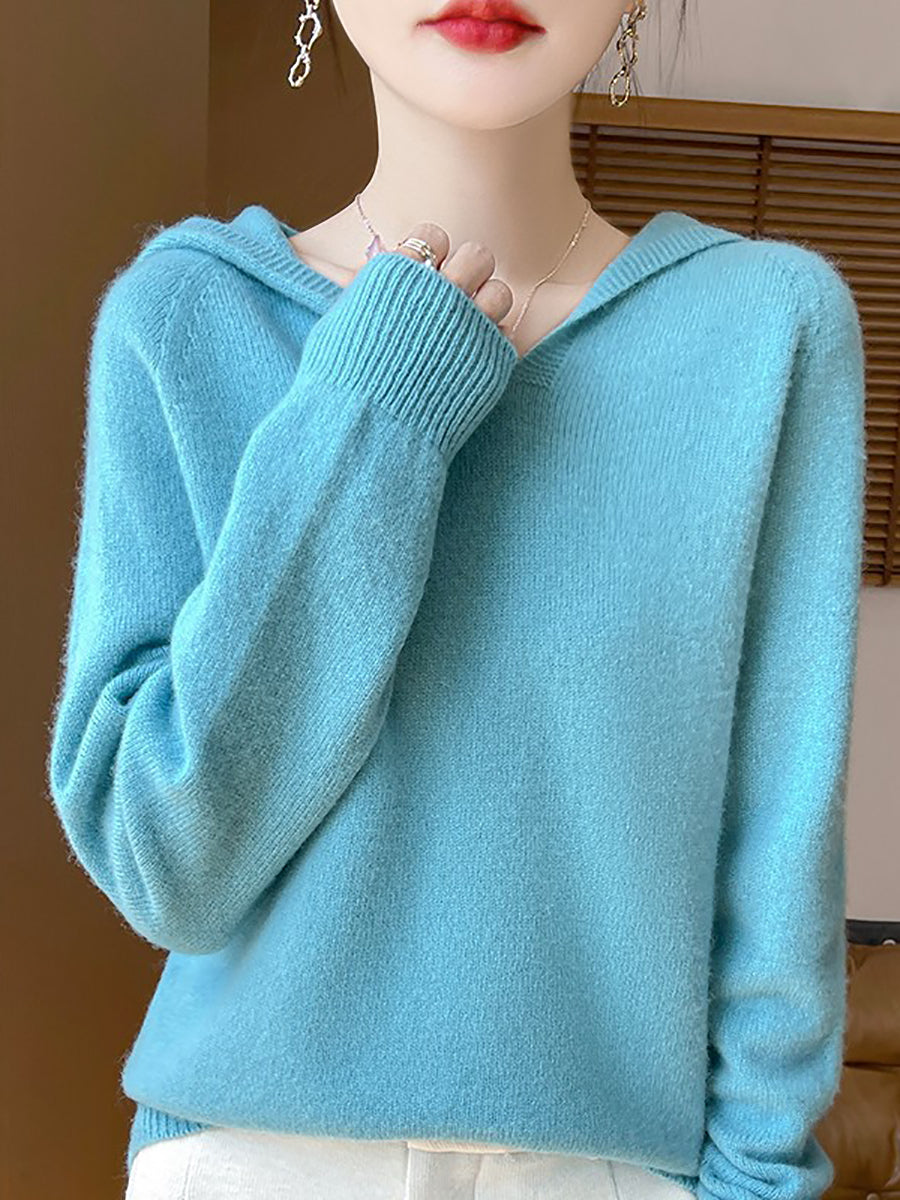 Suéter feminino com capuz em cores puras e estilo artístico para o outono.