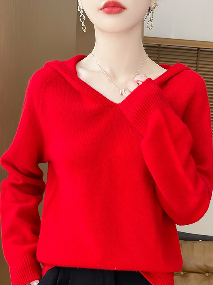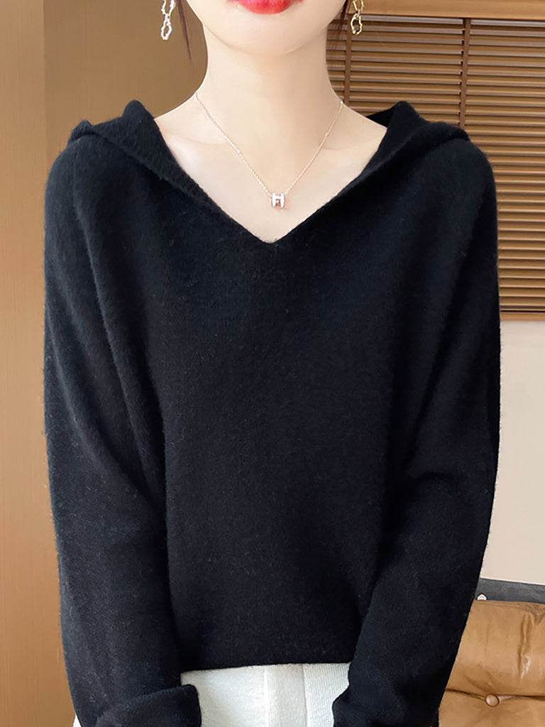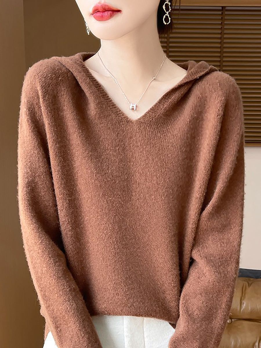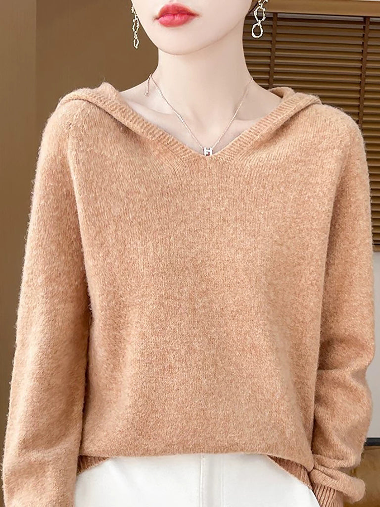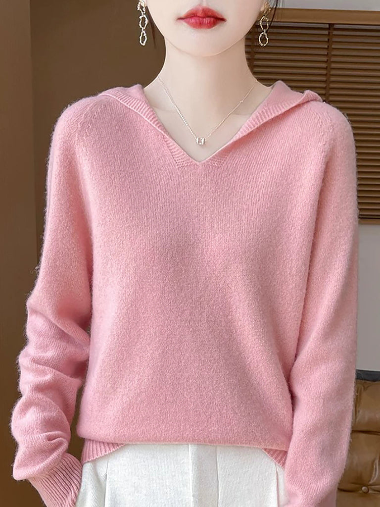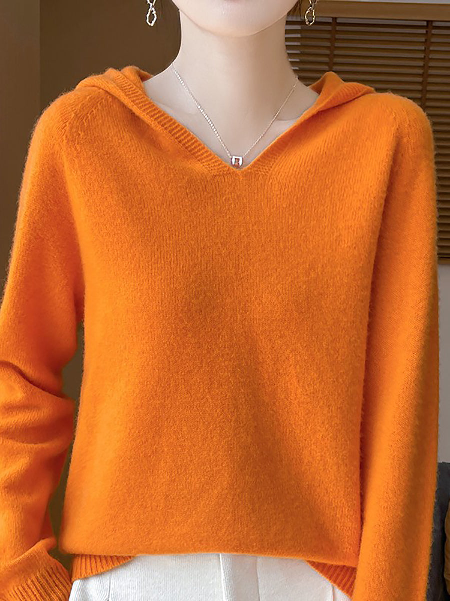 Suéter feminino com capuz em cores puras e estilo artístico para o outono.