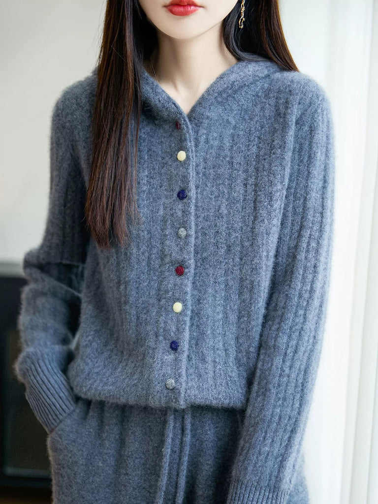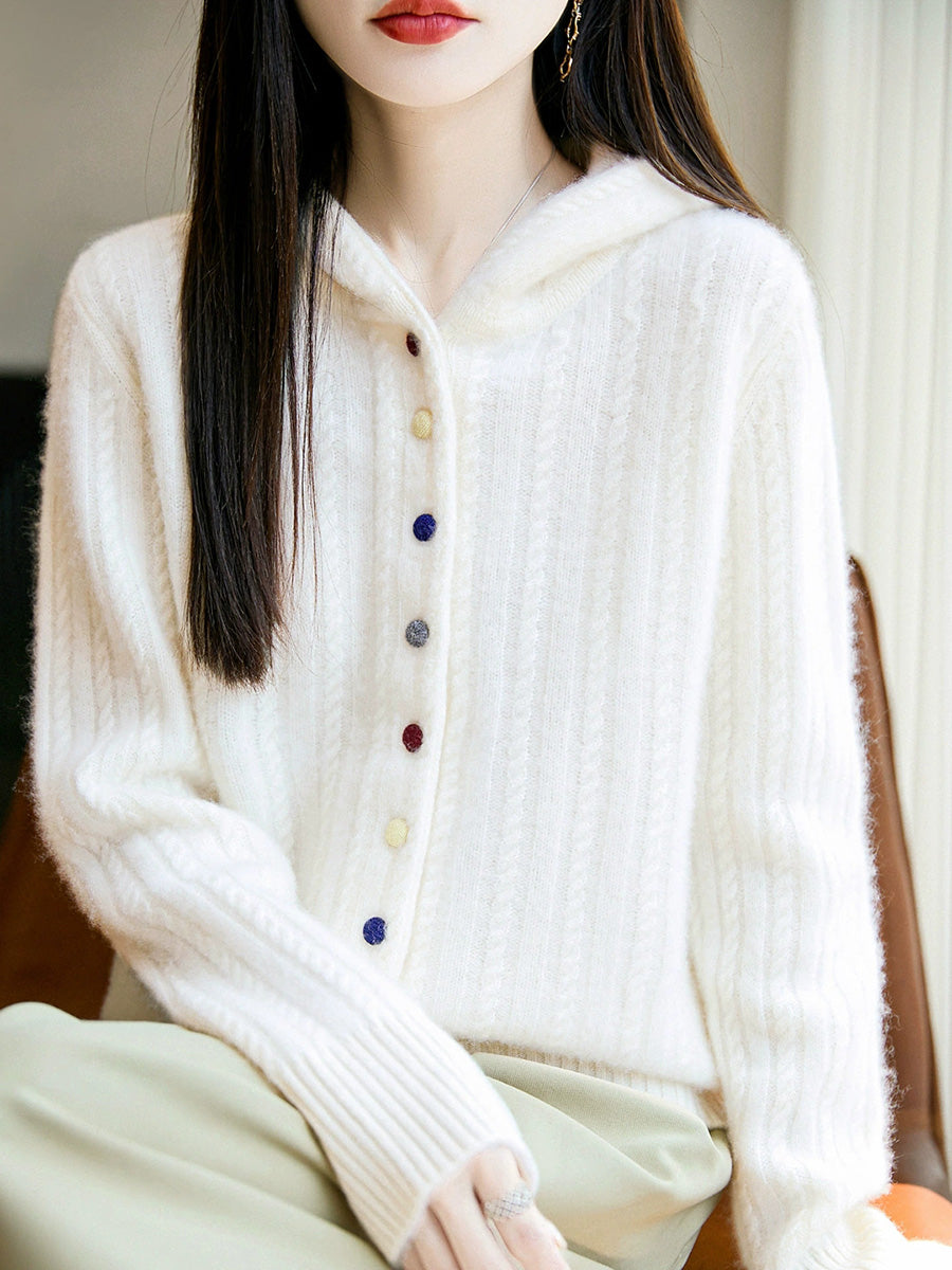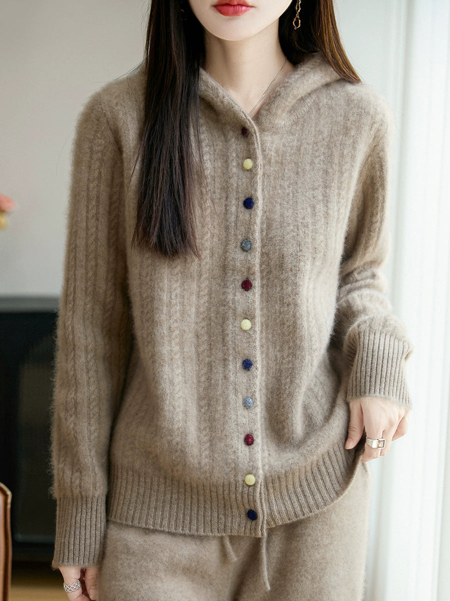 Casaco de malha com capuz feminino casual de inverno em cor lisa