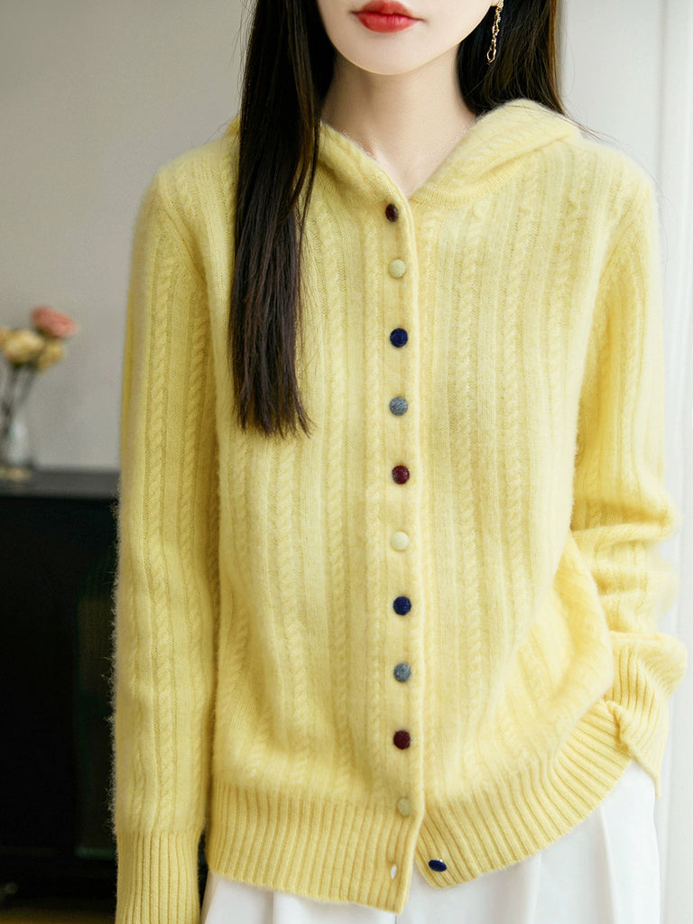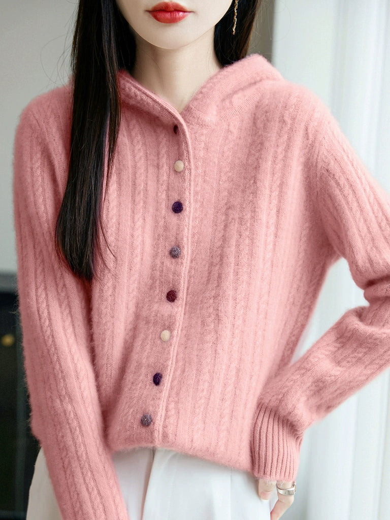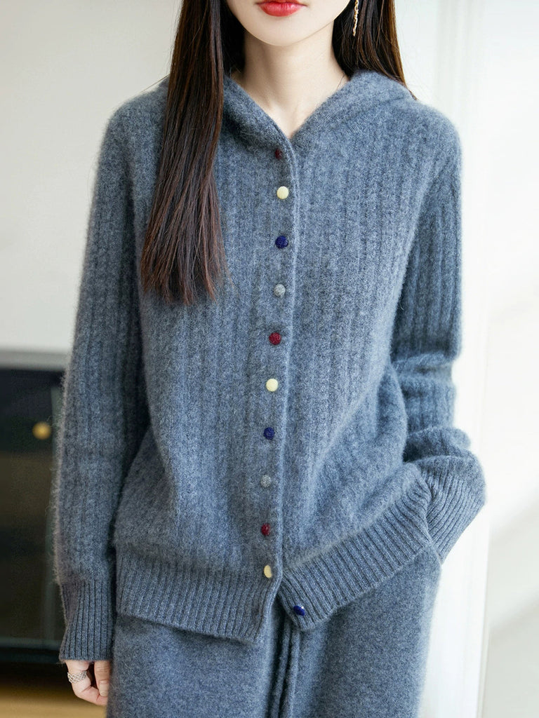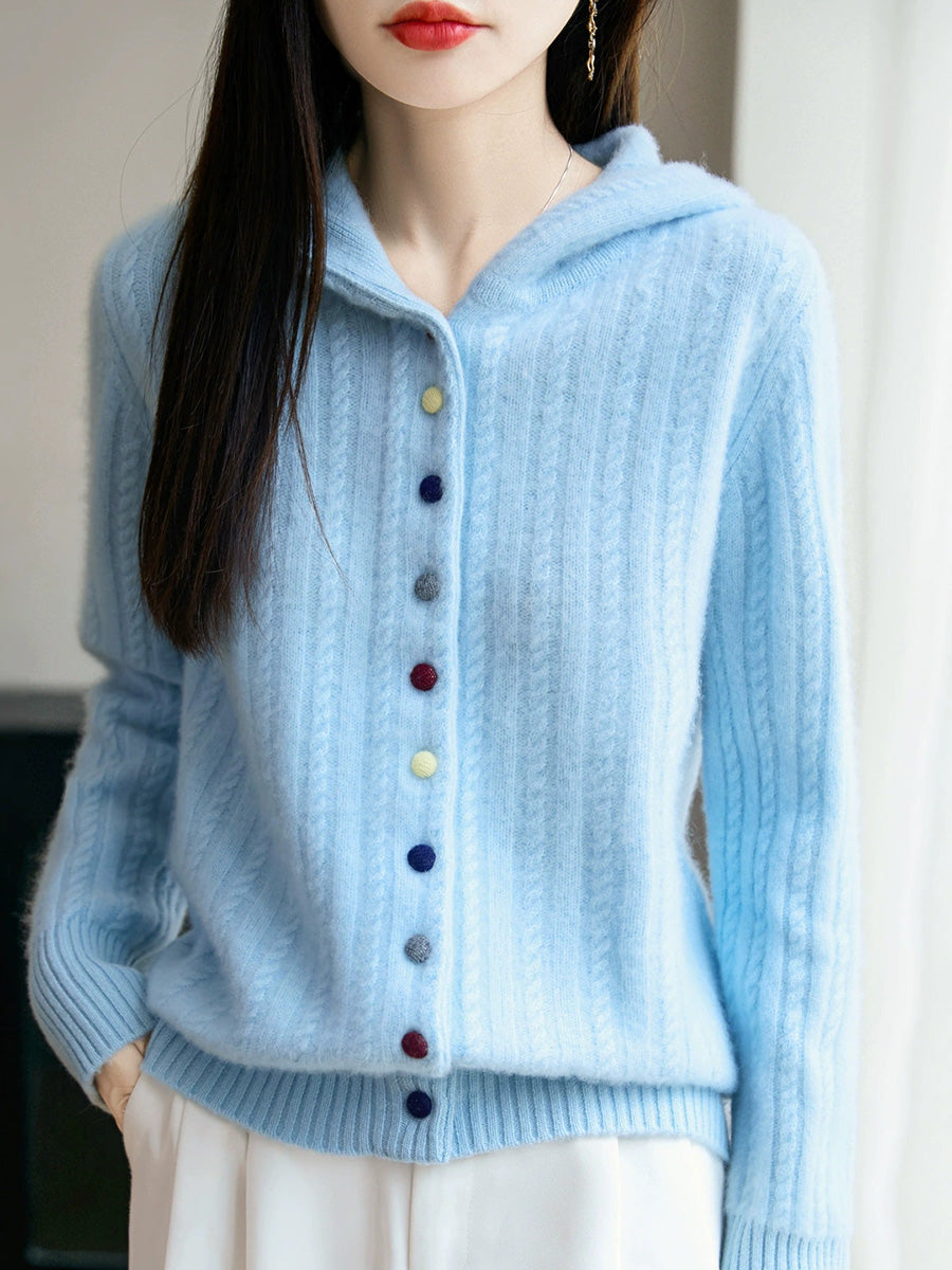 Casaco de malha com capuz feminino casual de inverno em cor lisa