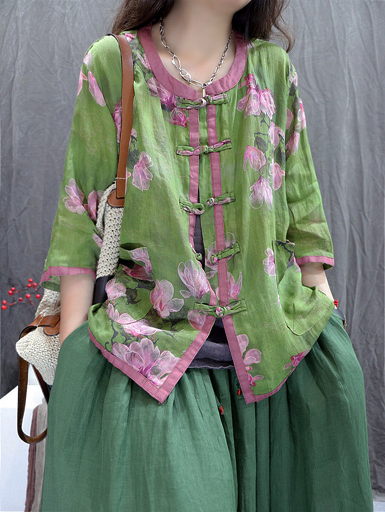 Mulheres Vintage Outono Sólido Linho Camisa Casaco