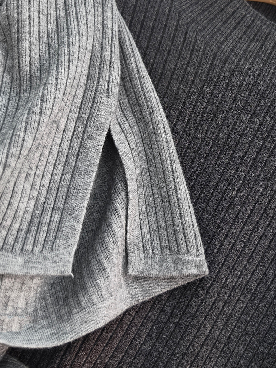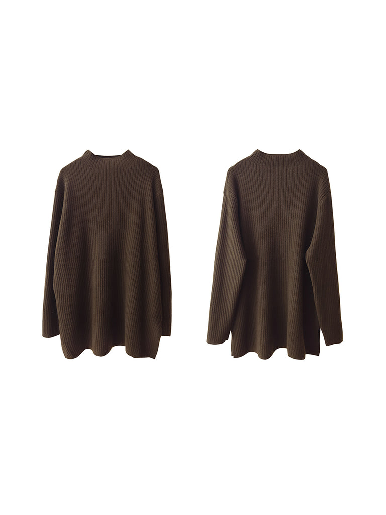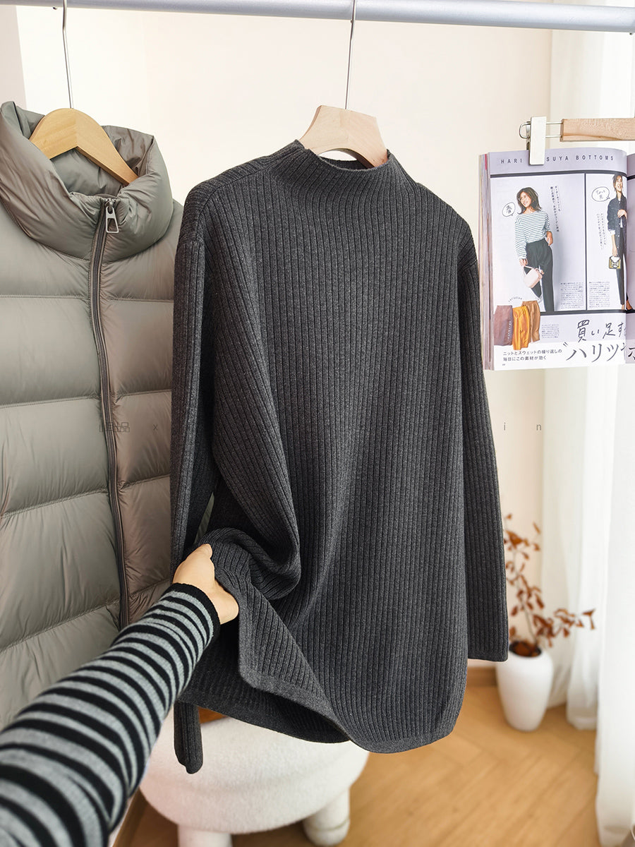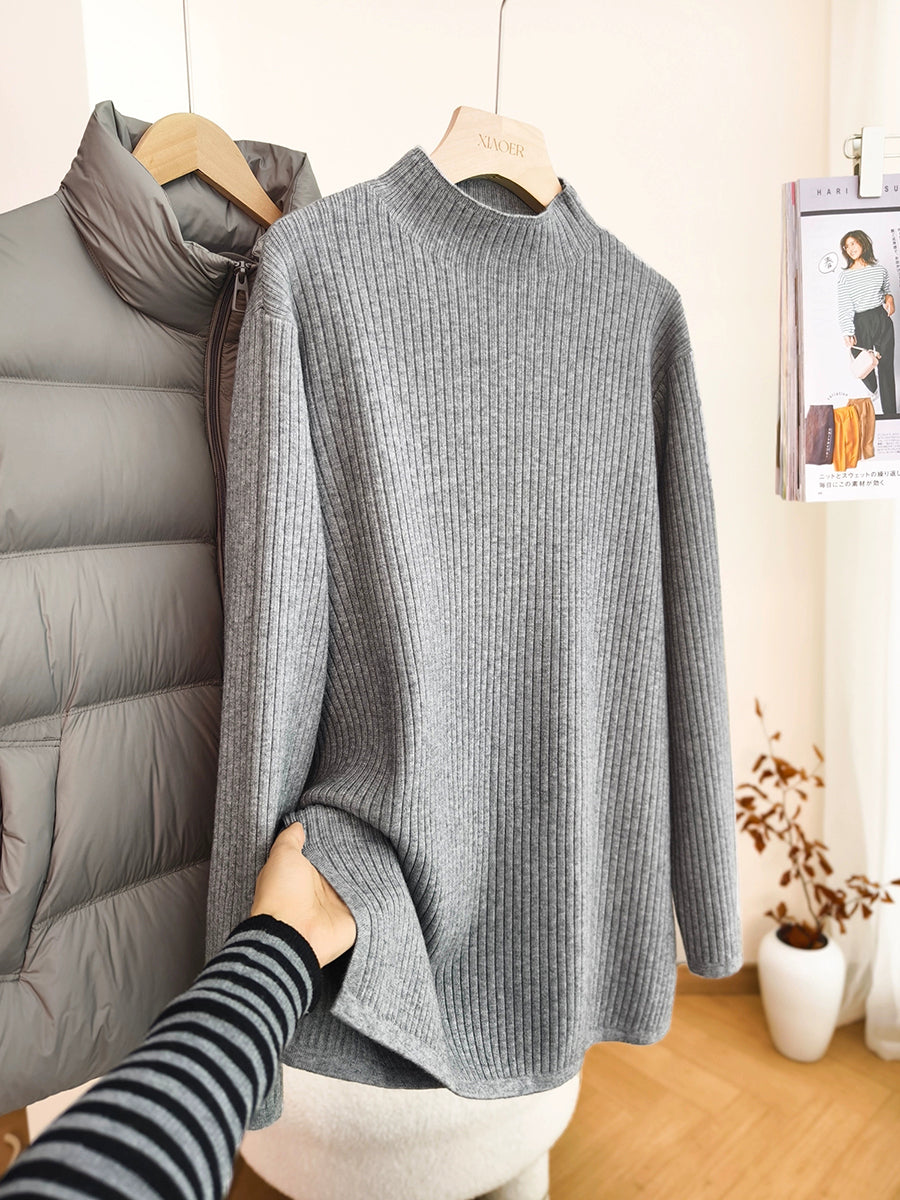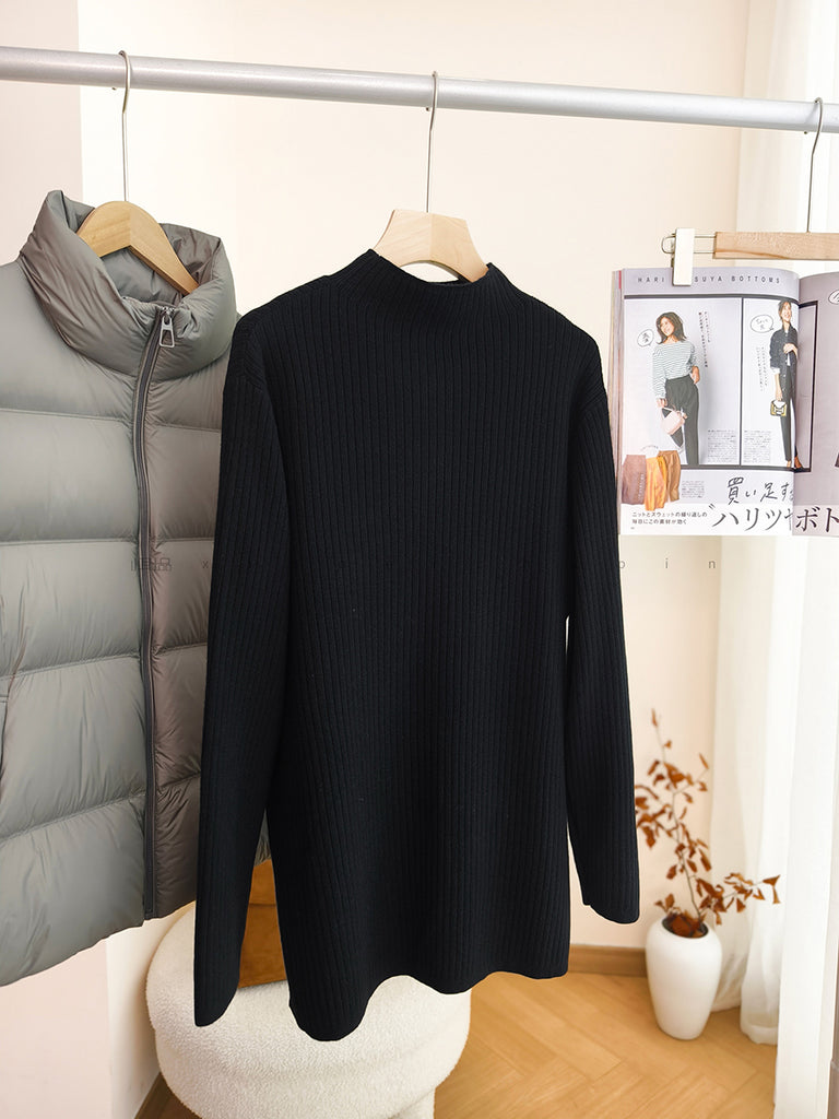 Suéter feminino de gola alta curta em cores lisas, estilo artístico outonal.