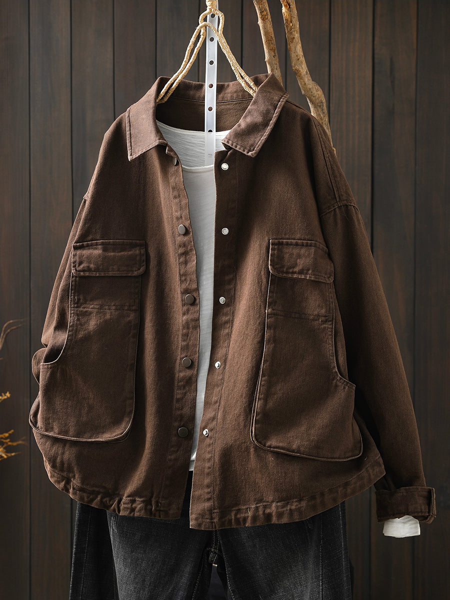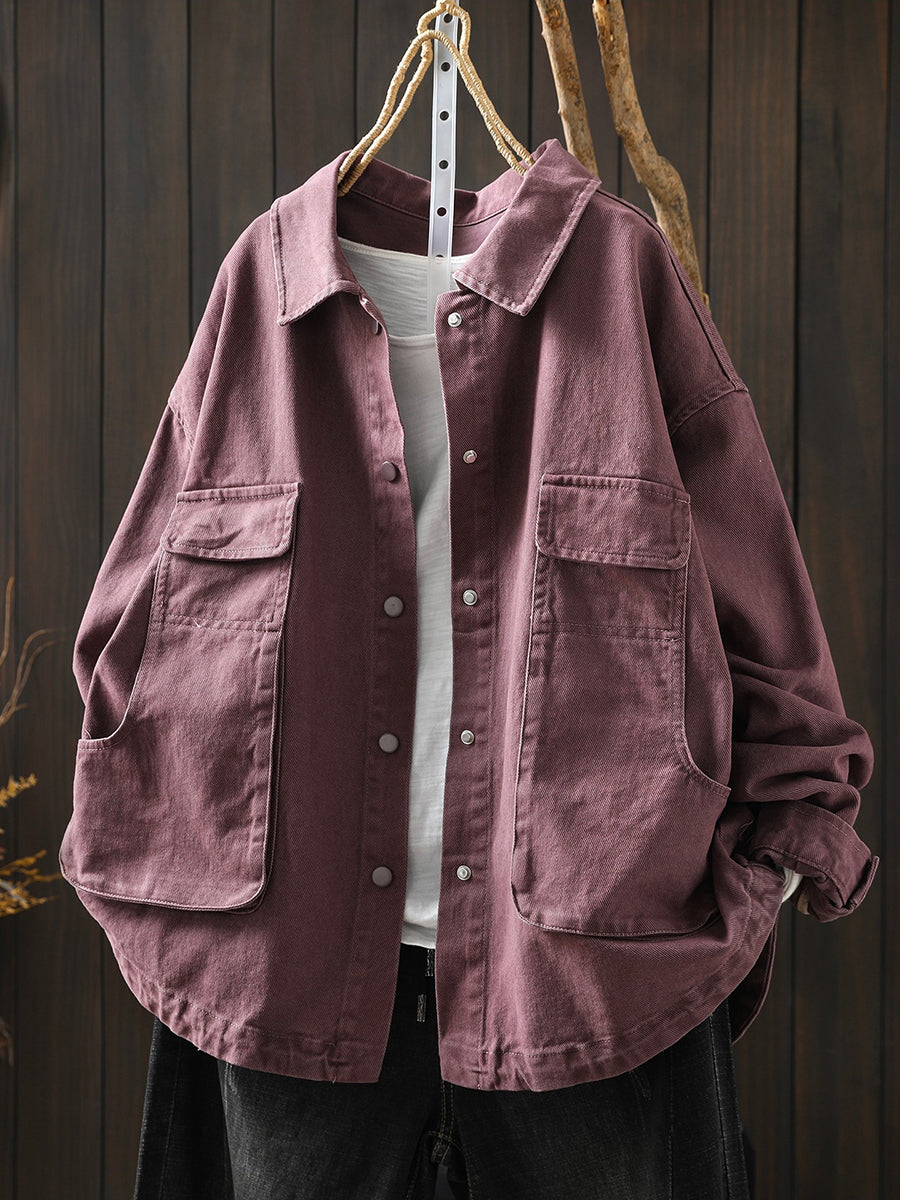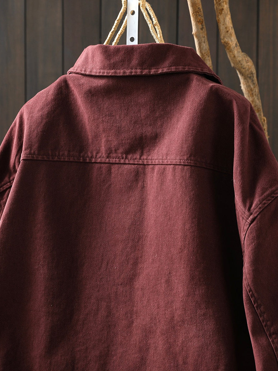 Jaqueta feminina de algodão lisa retrô primavera