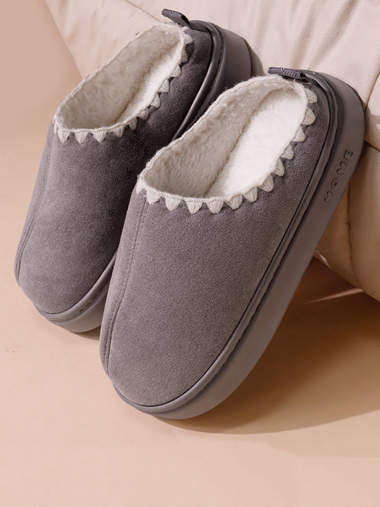 Pantufas de casal sólidas para ambientes internos com forro de lã quente
