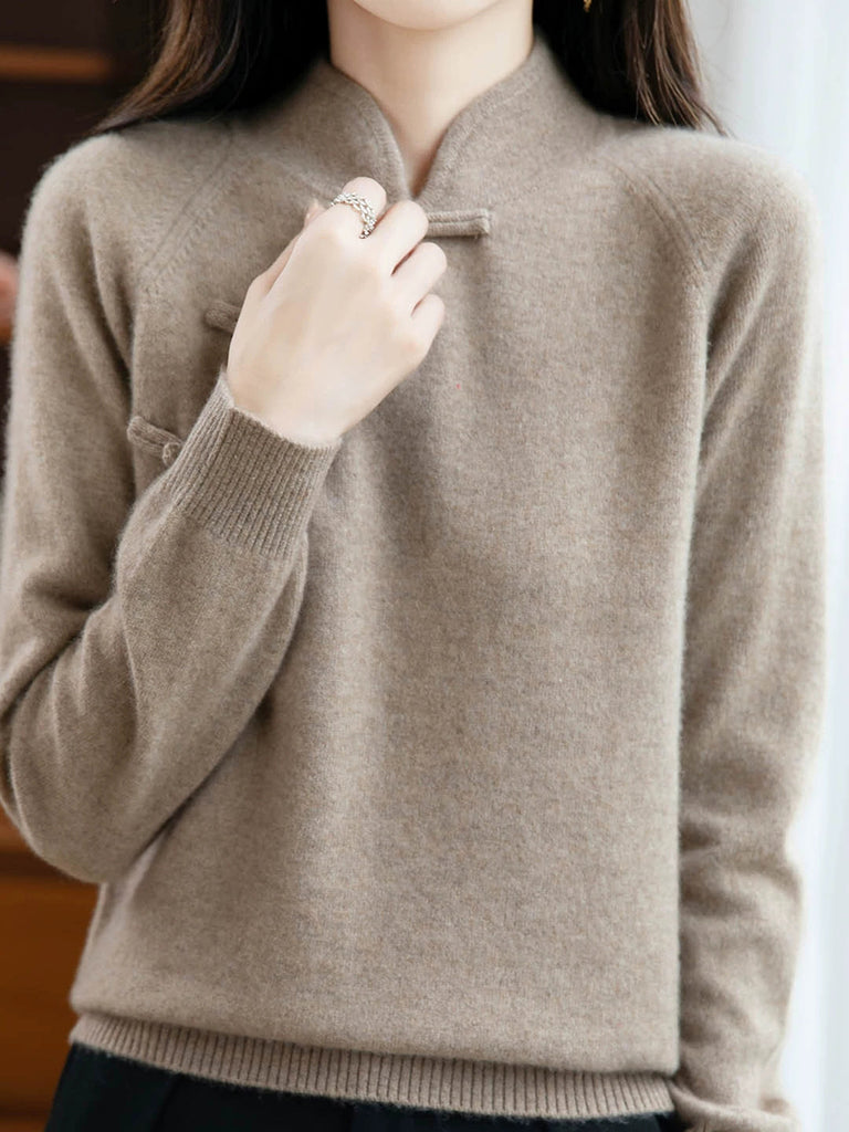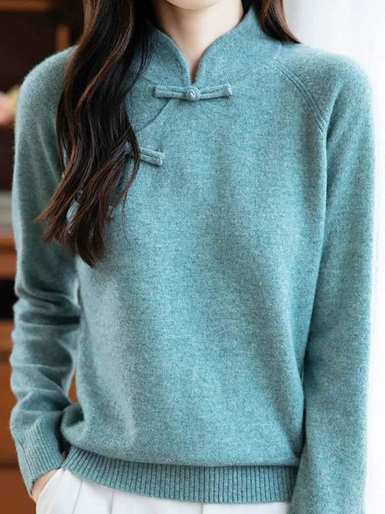 Mulheres Outono Colorido Botão O-pescoço Algodão Suéter