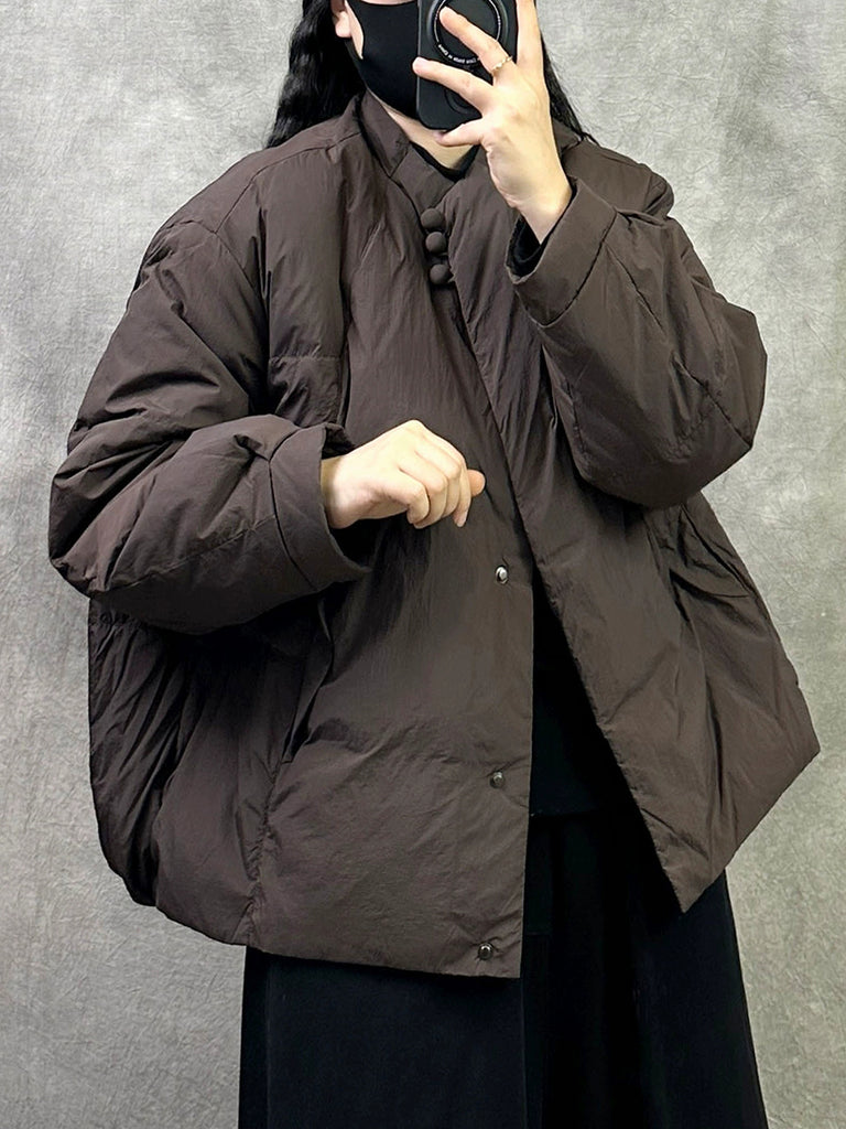 Casaco acolchoado feminino retrô de inverno em cor lisa com gola alta
