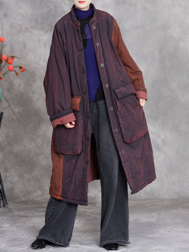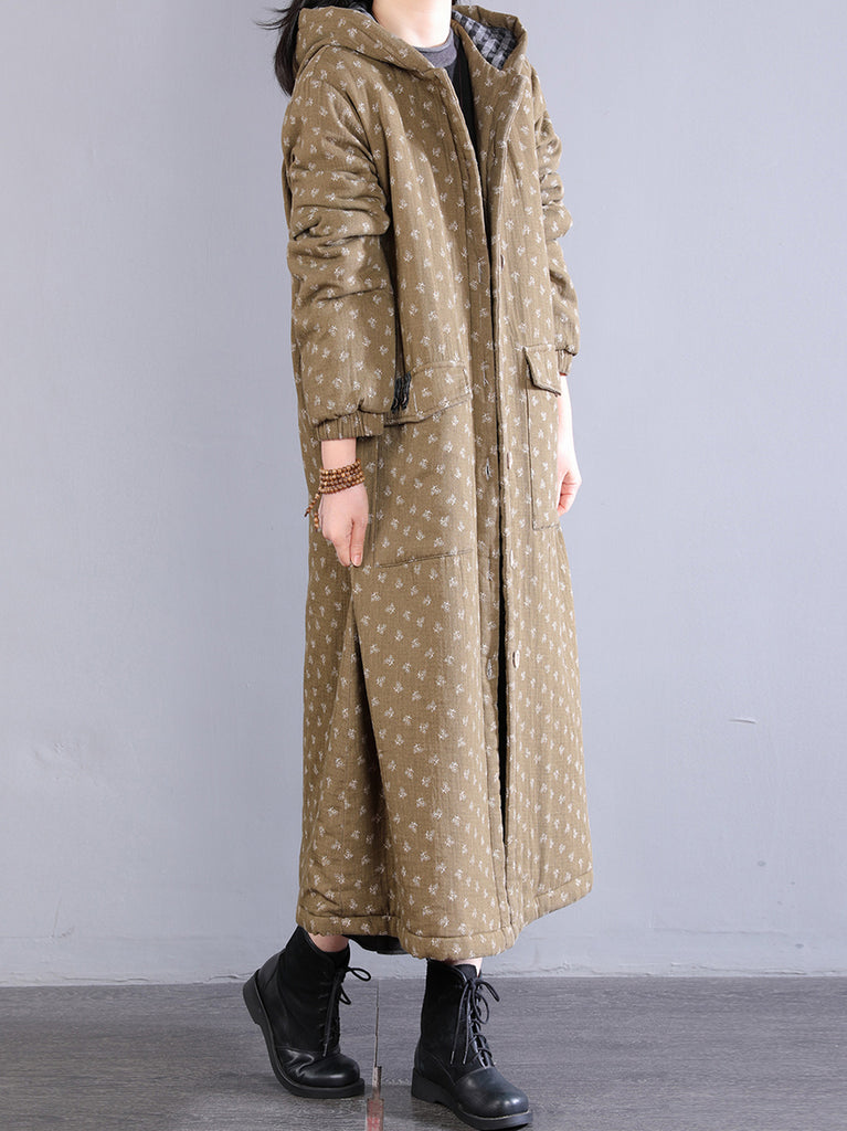 Casaco acolchoado de linho feminino com estampa étnica de inverno